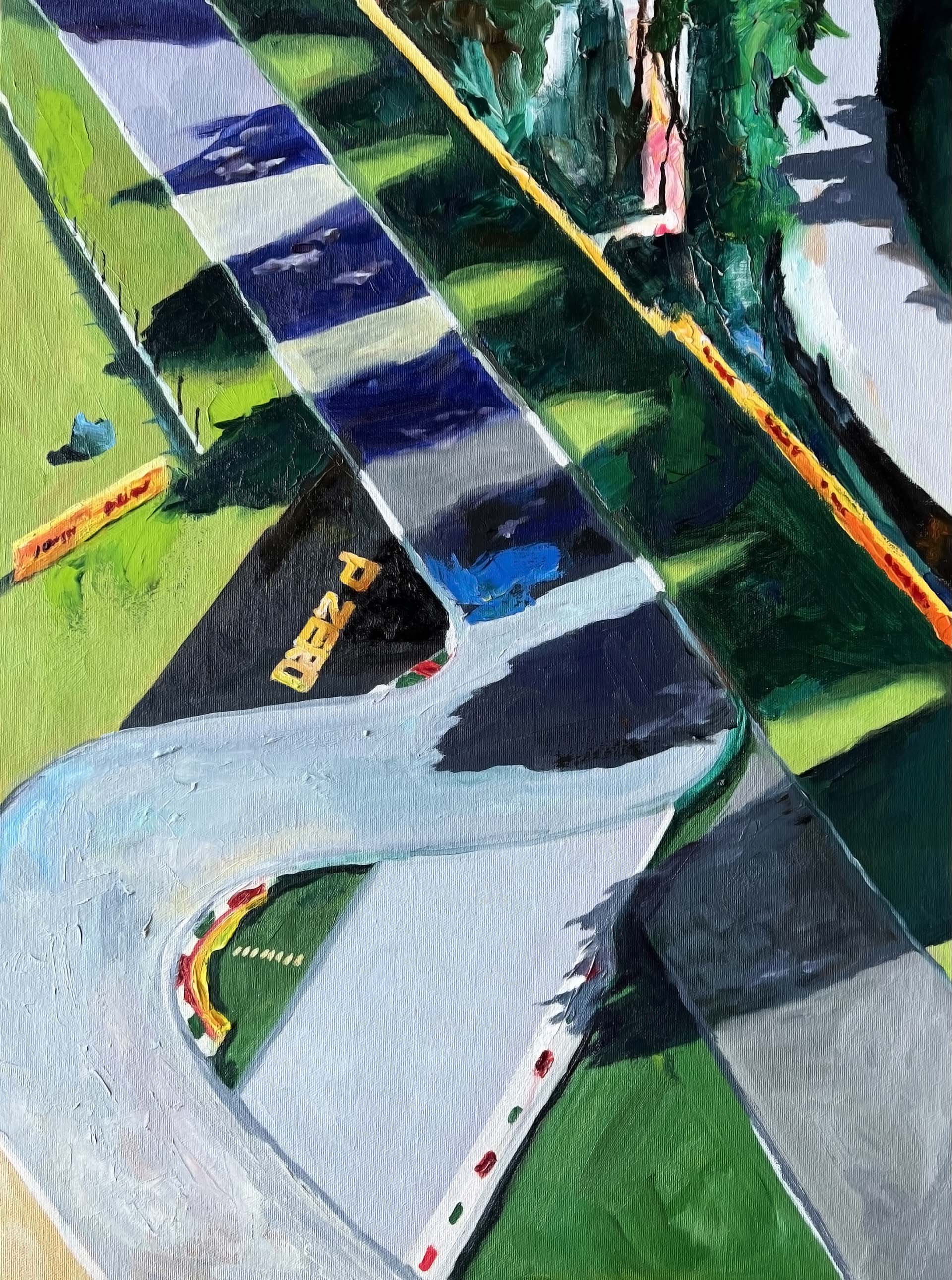 明瞭な色の看板やサインが画面にひしめく。都市がもつ覇気を写すも、所々で輪郭や境界はぼやけ、虚な印象を残す辰巳菜穂の風景画。描くのは「私たちが生きている世界のありさま」。世界は彼女にどう映っているのか。そして、絵を描くこととは。本人に話を聞いた。