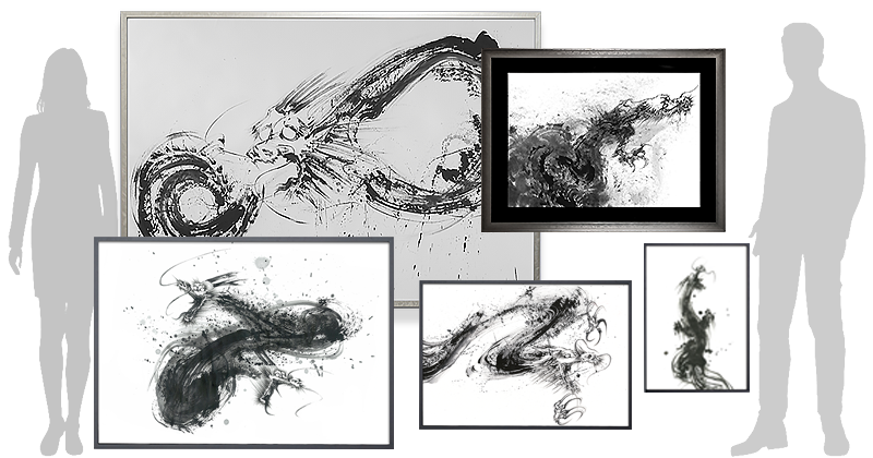 2022年5月に開催された個展「飛墨 HISUMI」で展示された作品のほか、同期間中にVIP限定で開催されたライブペイントで描かれた墨絵作品「無限龍」など、新たに描き下ろした新作を含む全7点の「龍」の墨絵ジークレー作品を販売します。