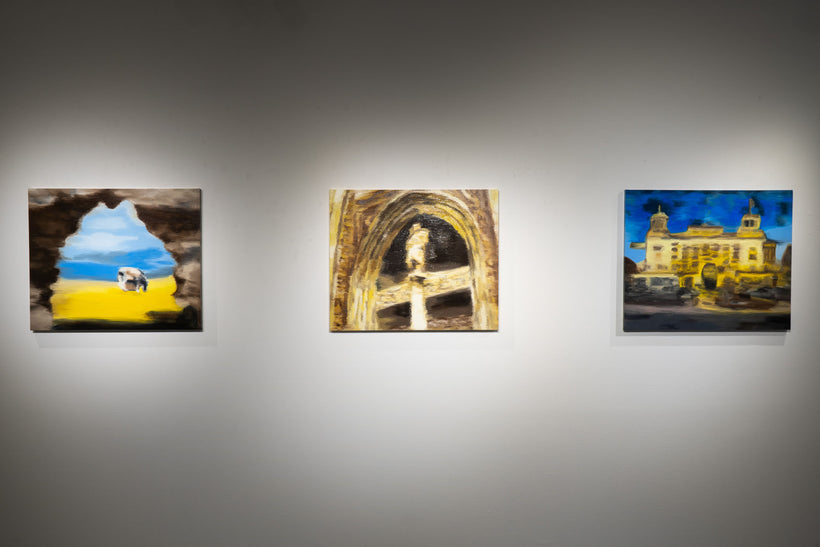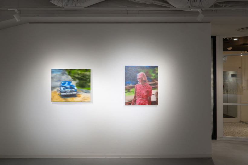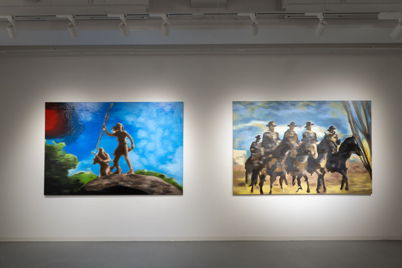 古い映画や古本などからサンプリングした素材をデジタル上でコラージュし、ペインティングを施す制作スタイル。現在は油彩に取り組んでいる。