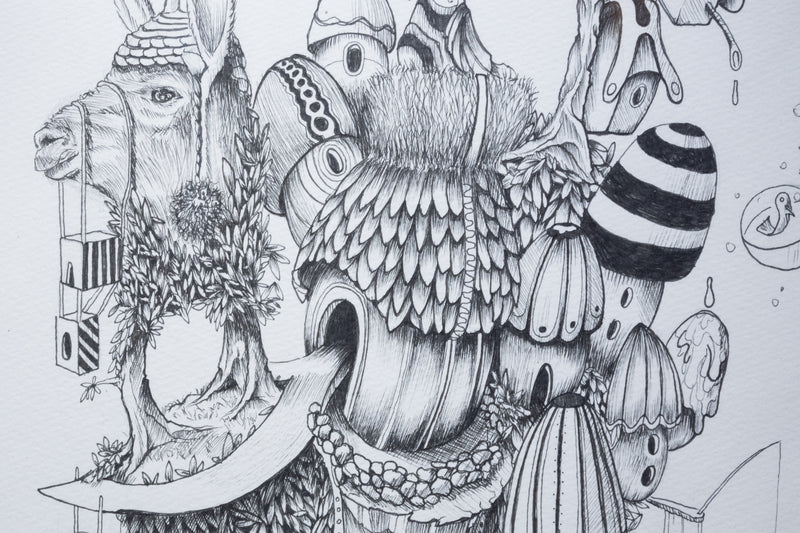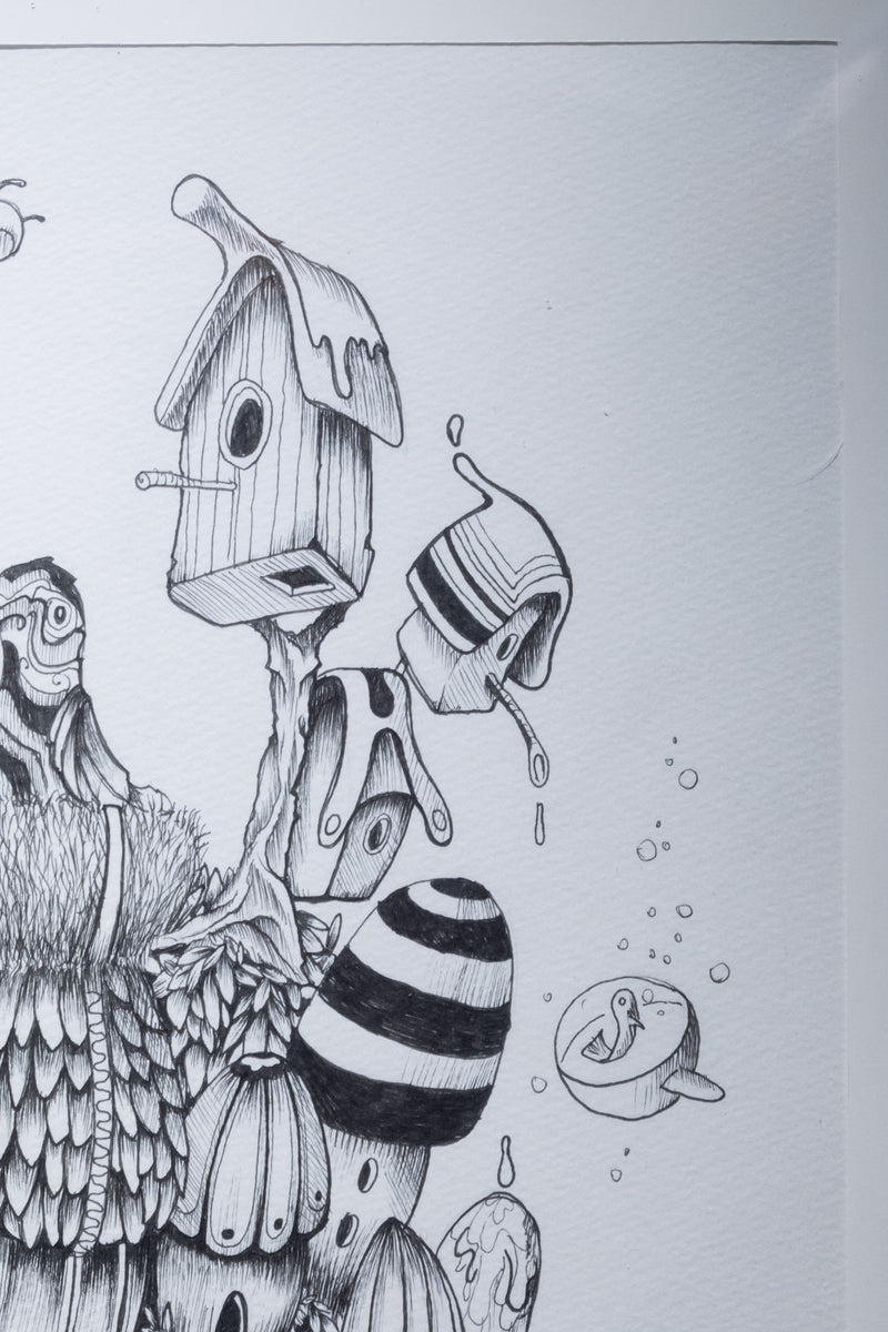 Federico Bartoli draws a fantasy world by refining subjects from all ages and countries, from classical painting motifs and fables to pop culture since the 1990s.