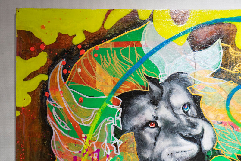 Fascinated by the energy of nature, the instincts and way of life of wild animals, Hayashi creates works based on the belief of "NOMAD HEART". The reason why he often draws lions as a motif is that he sympathizes with the way of life that does not have a territory and increases the number of friends while migrating to a place where it is easy to live.