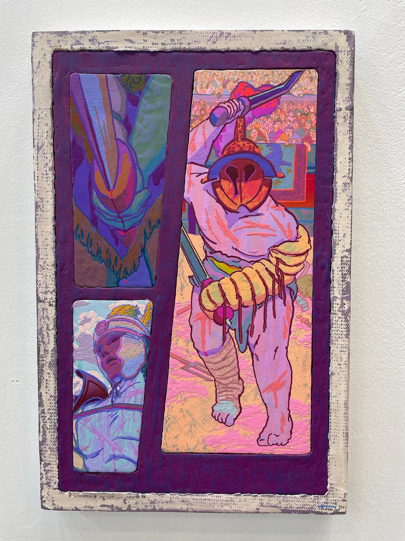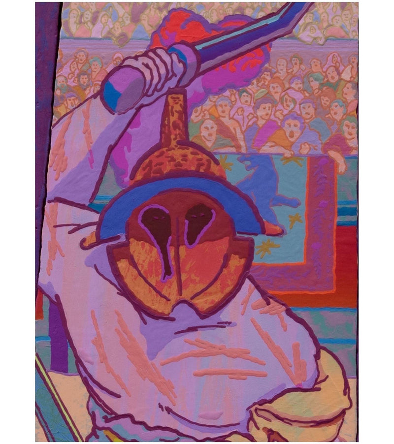 He abstractly depicts sequences that resemble the slapstick drama of a manga. The works on display at the solo exhibition "Hidden things" stir the viewer's imagination in the invisible parts.