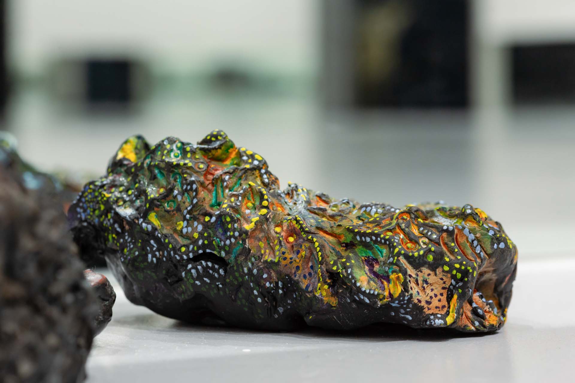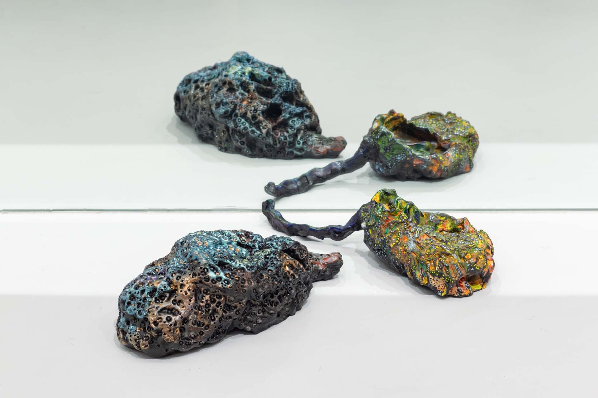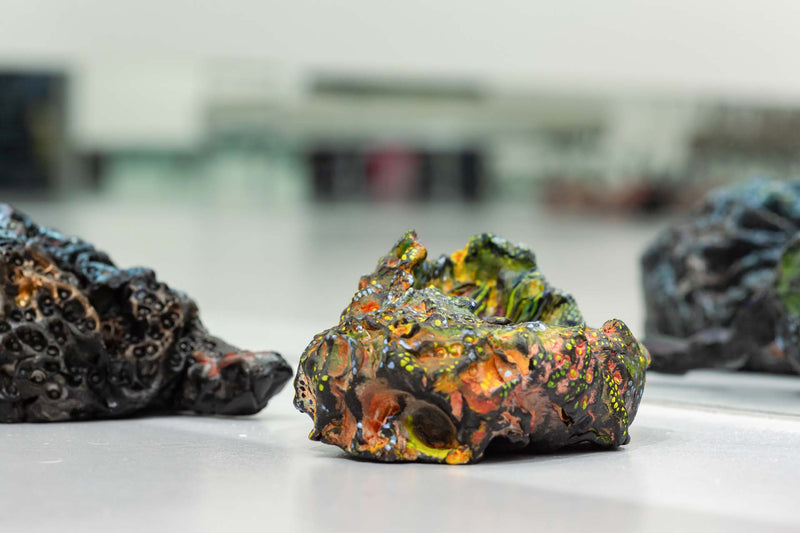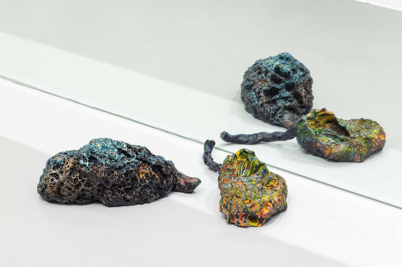 Keita Ando's work is characterized by depicting moments in which the boundary between life and death fluctuates, through images in which the body and the landscape seem to blend together. In this exhibition, "Scorching Heat and Decay / Freezing Cold and Germination," he uses fossil-like bird specimens and line drawings reminiscent of mountain ranges and blood vessels to overlap different periods of life: growth and decay, freezing and preservation. This expression brings to light a sense of "the golden mean" that is not biased toward either life or death, and by juxtaposing new works with works by contemporary artists, he presents painting as a form of expression that is constantly changing in relation to others.