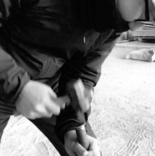 This work uses columnar basalt, which is formed when lava hardens into regular pentagonal or hexagonal shapes called "joints."