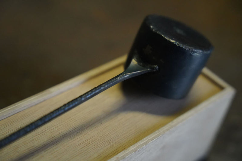 ⚫︎The larger joints are cut to a thickness of 0.5 mm to reduce weight, and the shape is slightly barrel-shaped. The bottom is roughly melted deep to create a distinctive look, creating a back wave effect. The handle has neat welded ripples and black-dyed kite string wrapped around it.