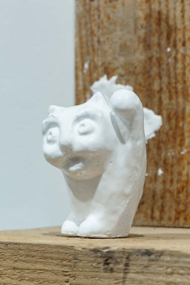 This work was exhibited at Shinichi Wakasa's exhibition "SuperLuckyCats." The beckoning cat is depicted as a being that evokes a world other than this one. The beckoning cat's eyes reflect the beauty that lies in chaos.