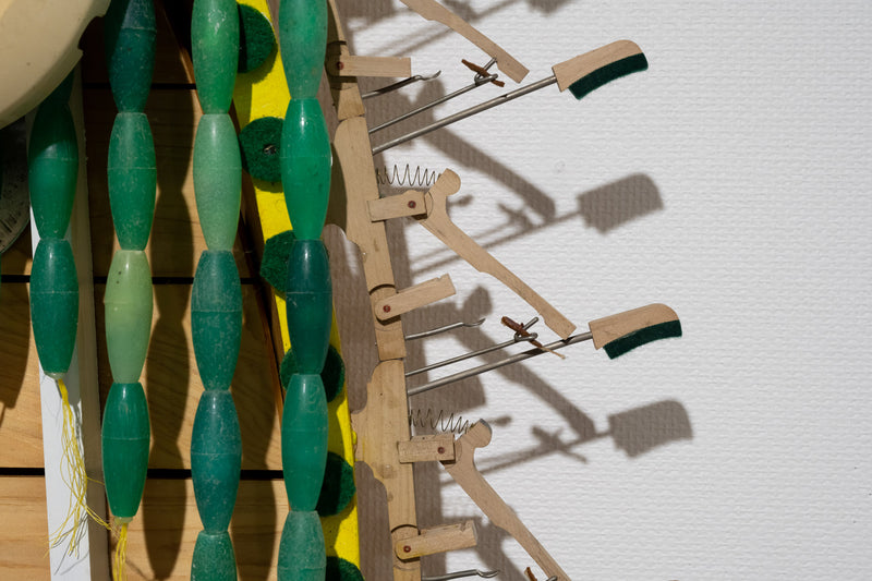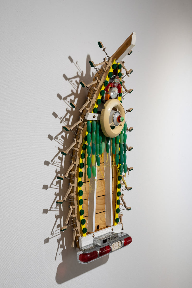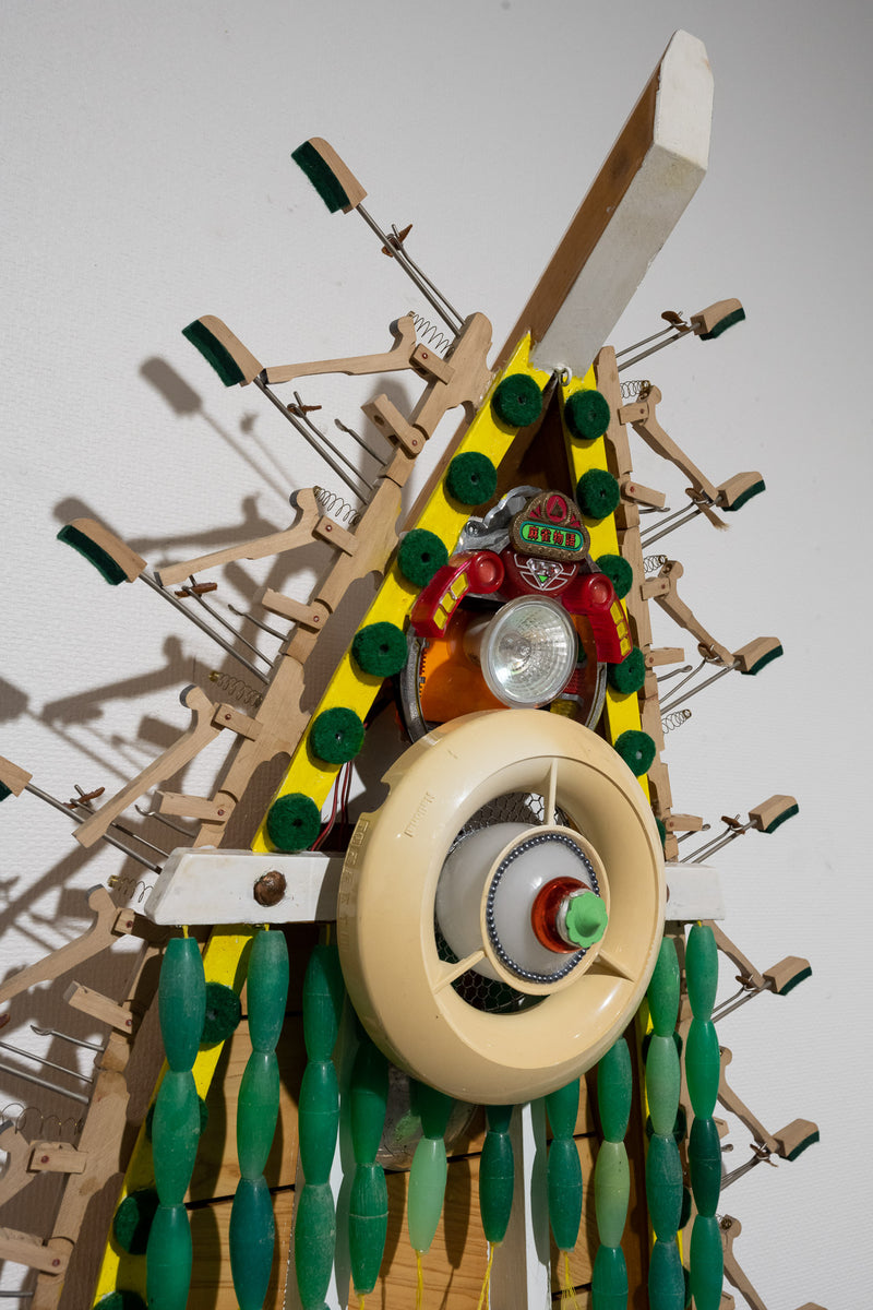 Based on the theme of "invisible power," Shinya Ishida creates three-dimensional works using scraps and garbage collected in places he visits.