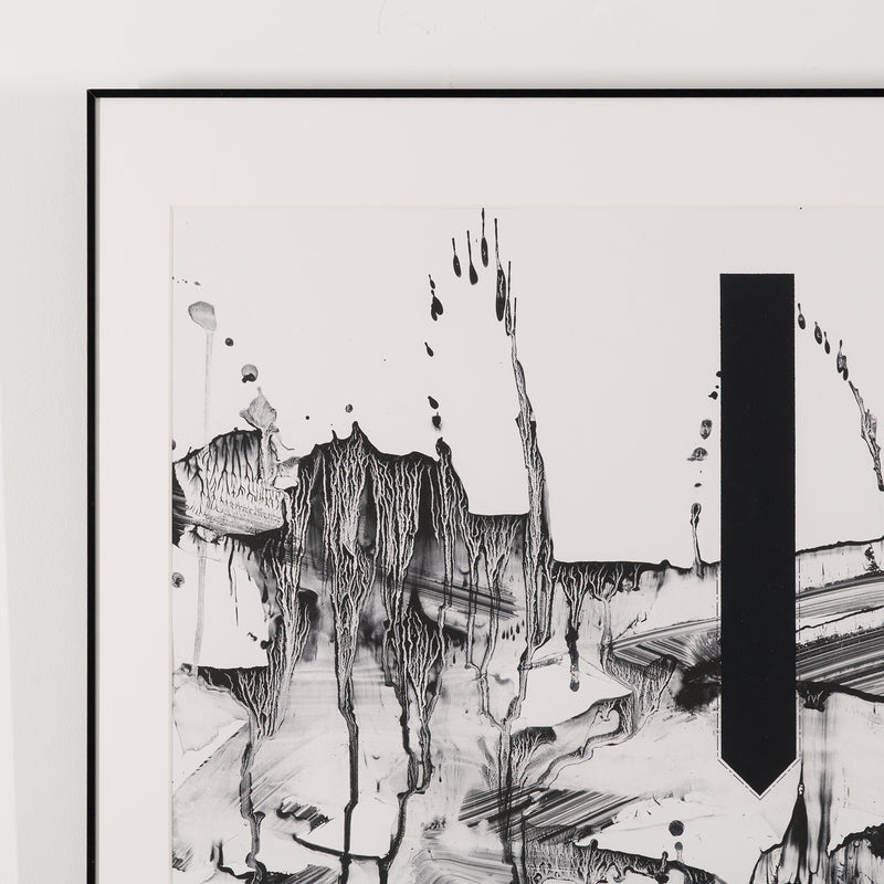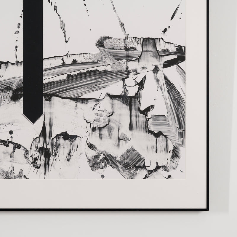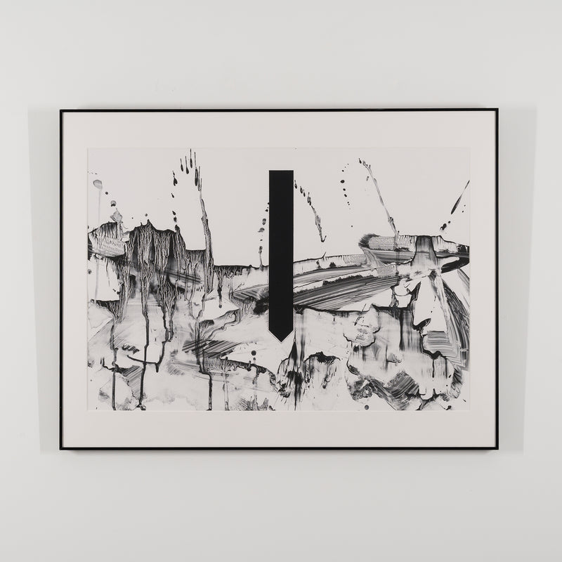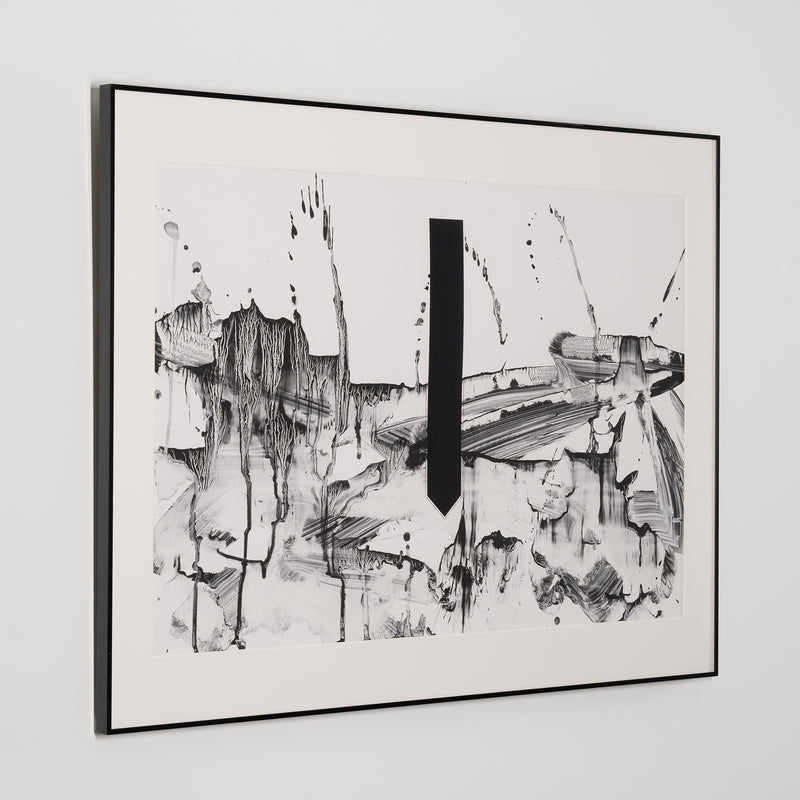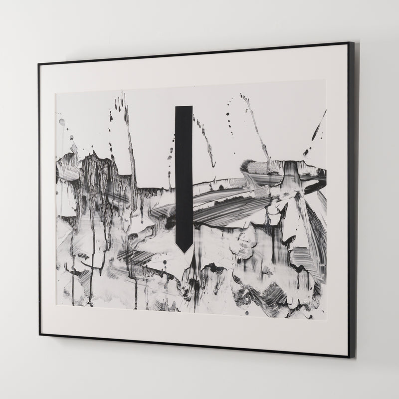Tanaka, who studied architecture as a student, focuses on calligraphy as drawing, combining the two-dimensionality of the support and the three-dimensionality of the diagram on the canvas.