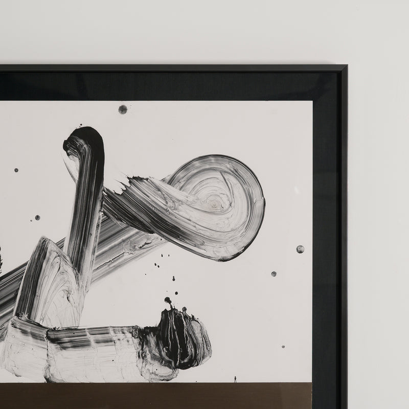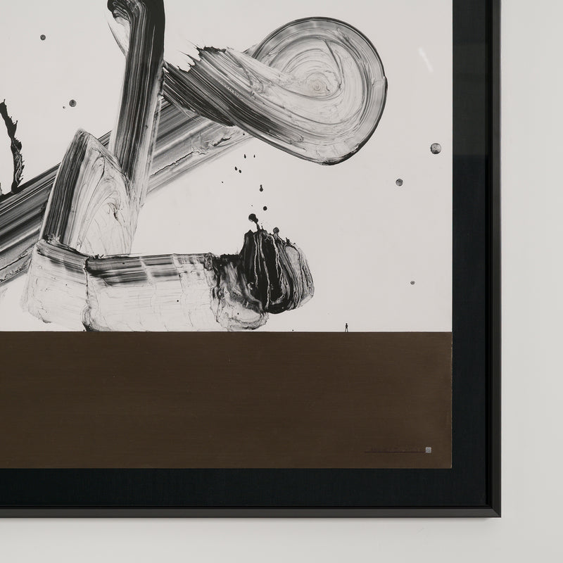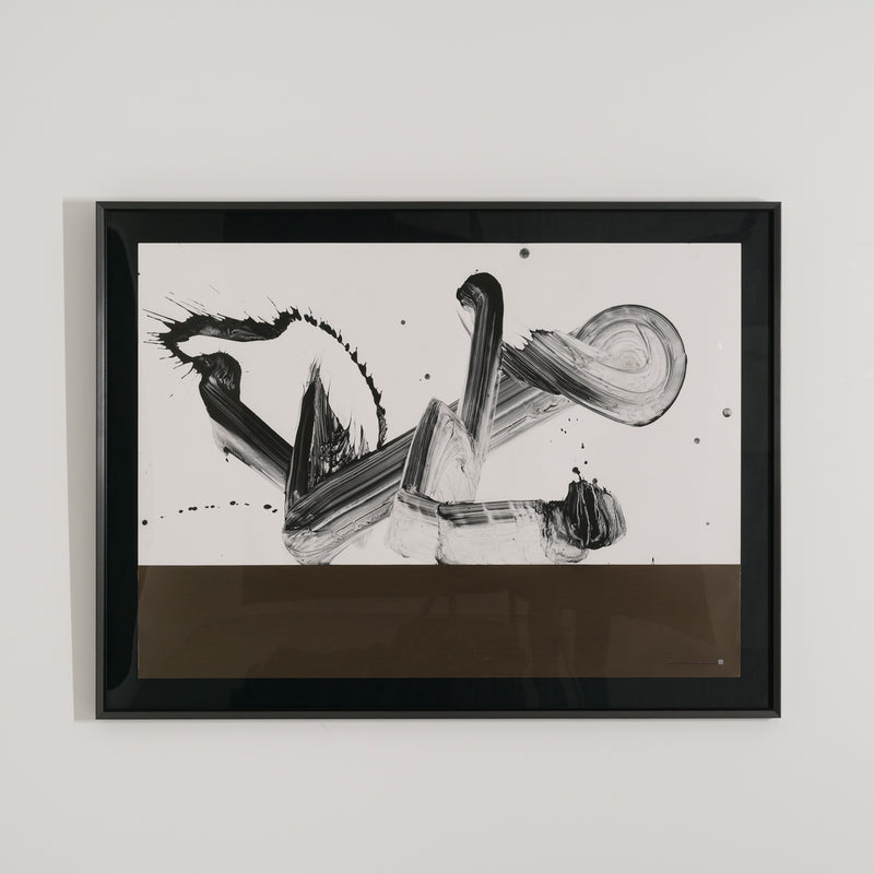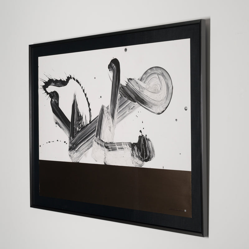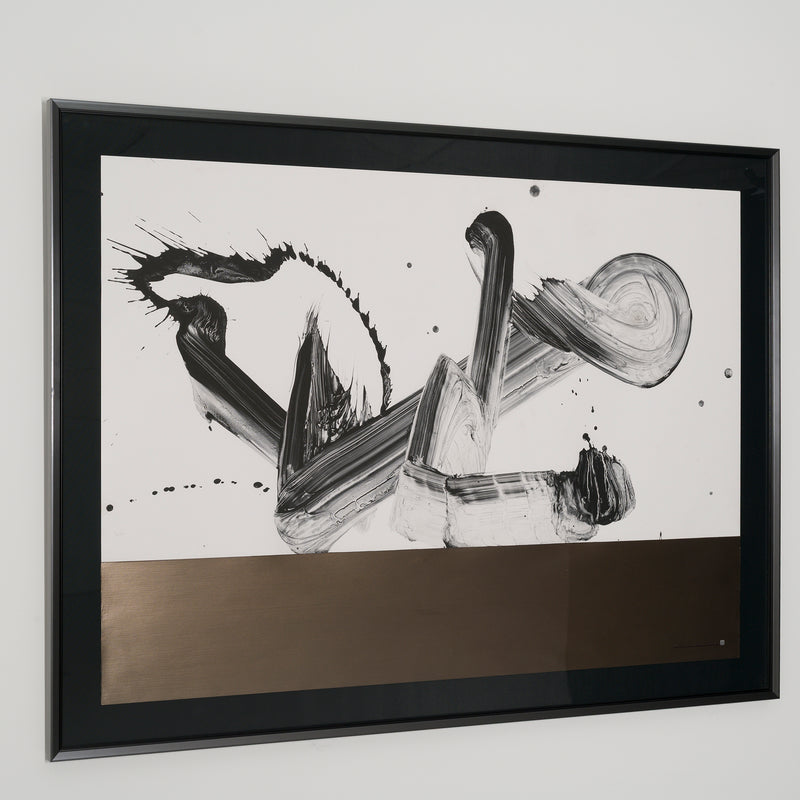Tanaka, who studied architecture as a student, focuses on calligraphy as drawing, combining the two-dimensionality of the support and the three-dimensionality of the diagram on the canvas.
