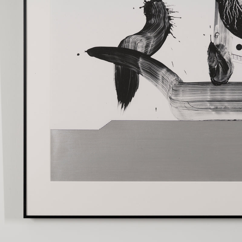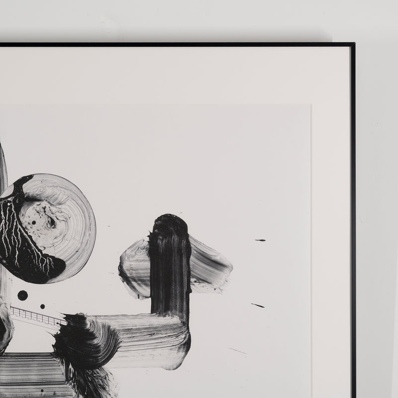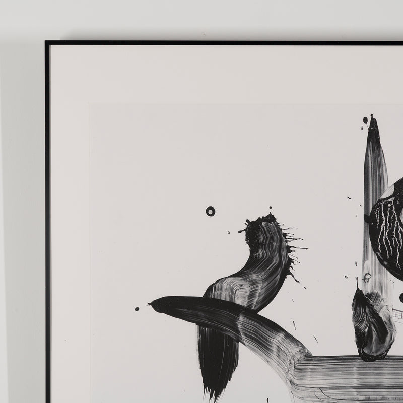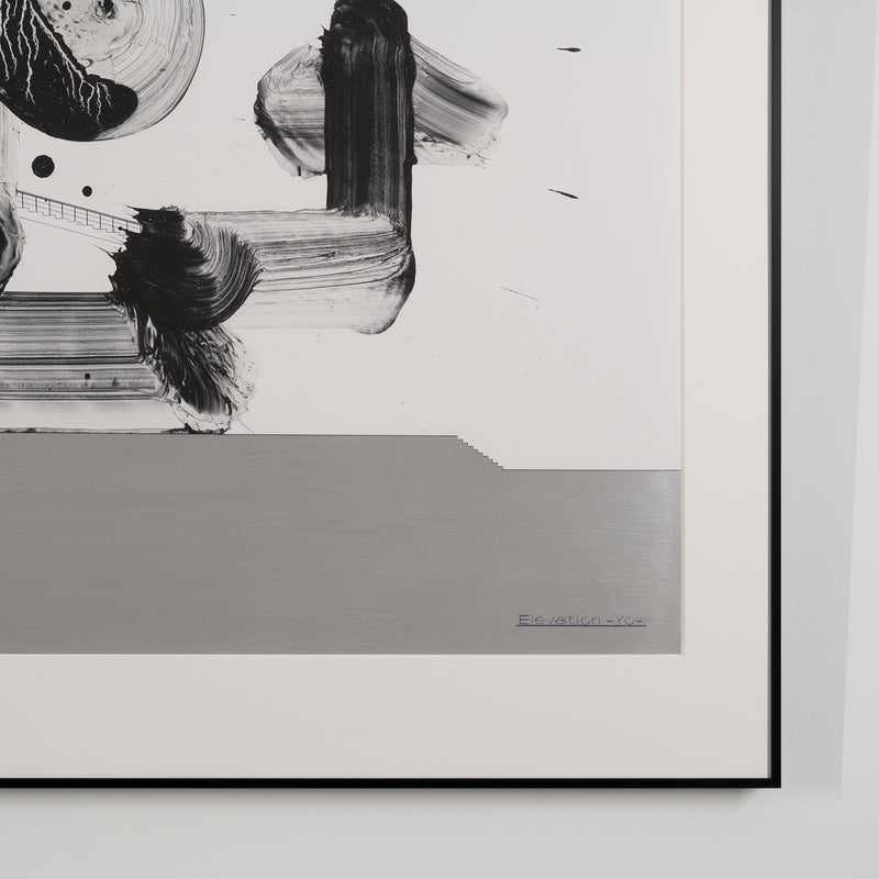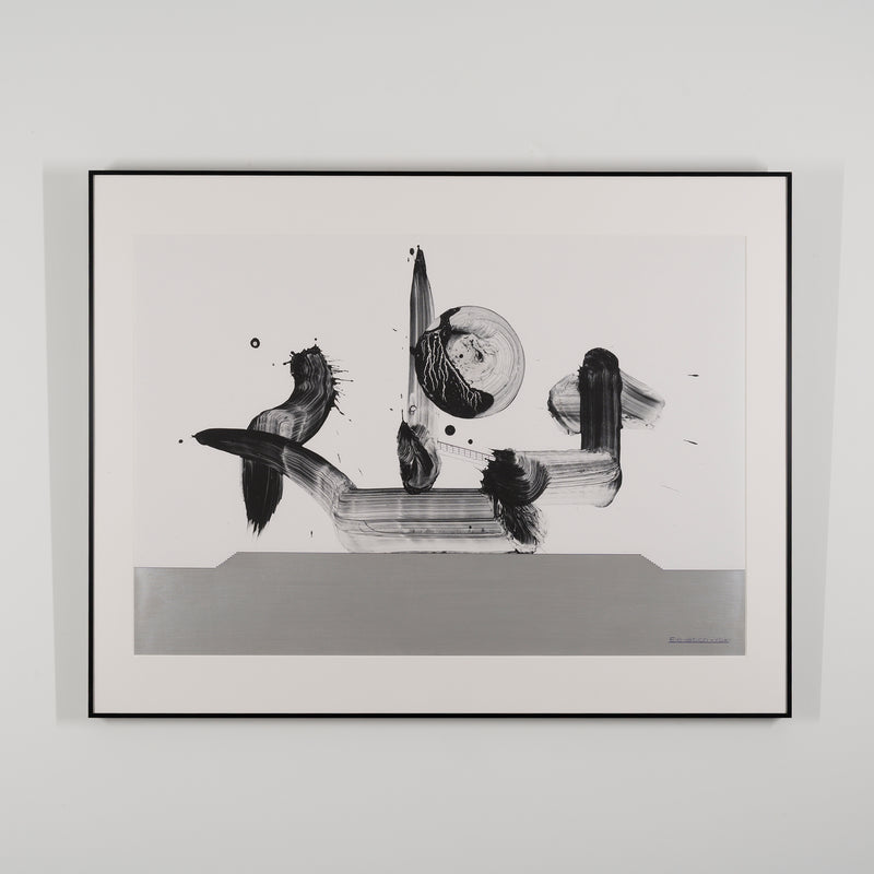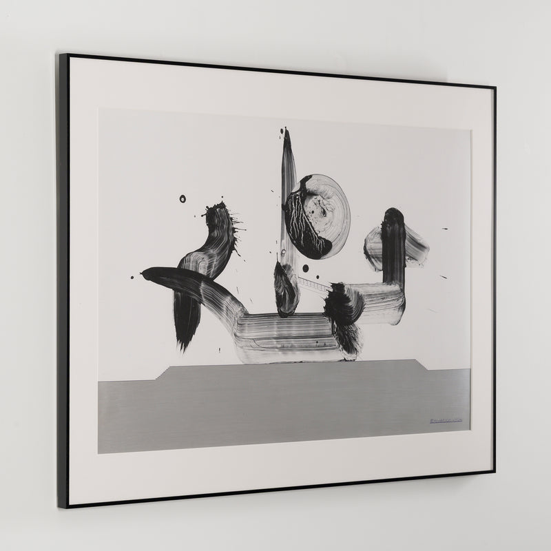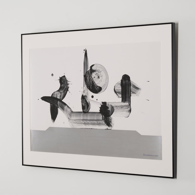 Tanaka, who studied architecture as a student, focuses on calligraphy as drawing, combining the two-dimensionality of the support and the three-dimensionality of the diagram on the canvas.