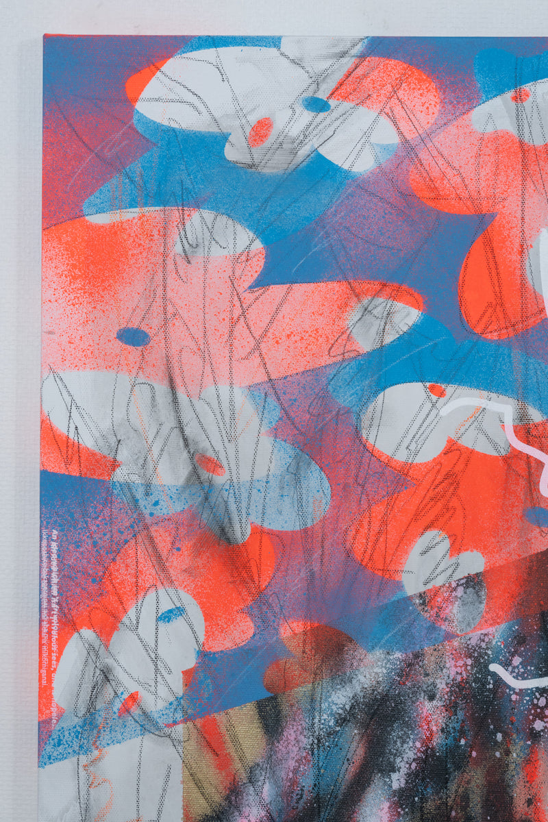 A "de" graffiti art work with the theme of "new harmony" so that the wind, the scent of flowers, and the hustle and bustle of the city gently mix.