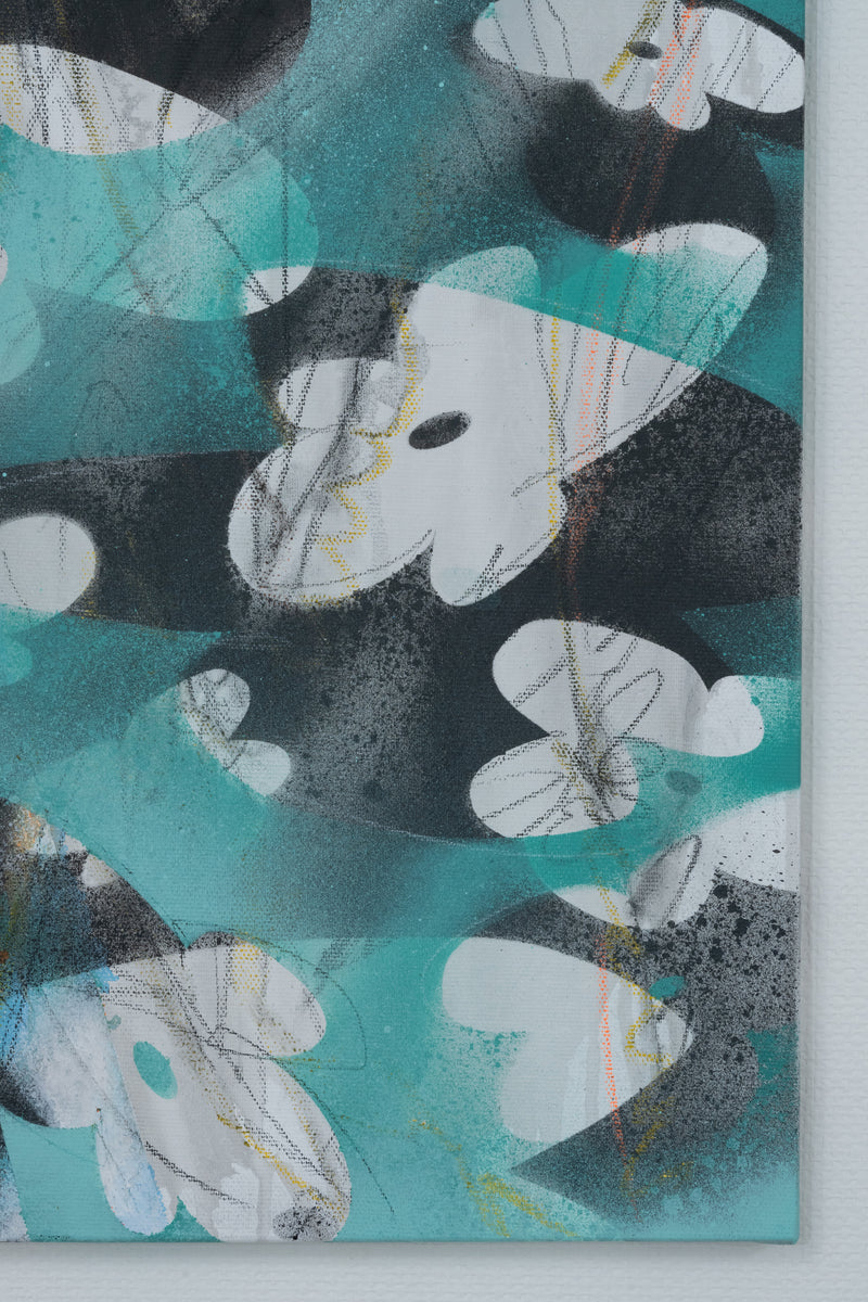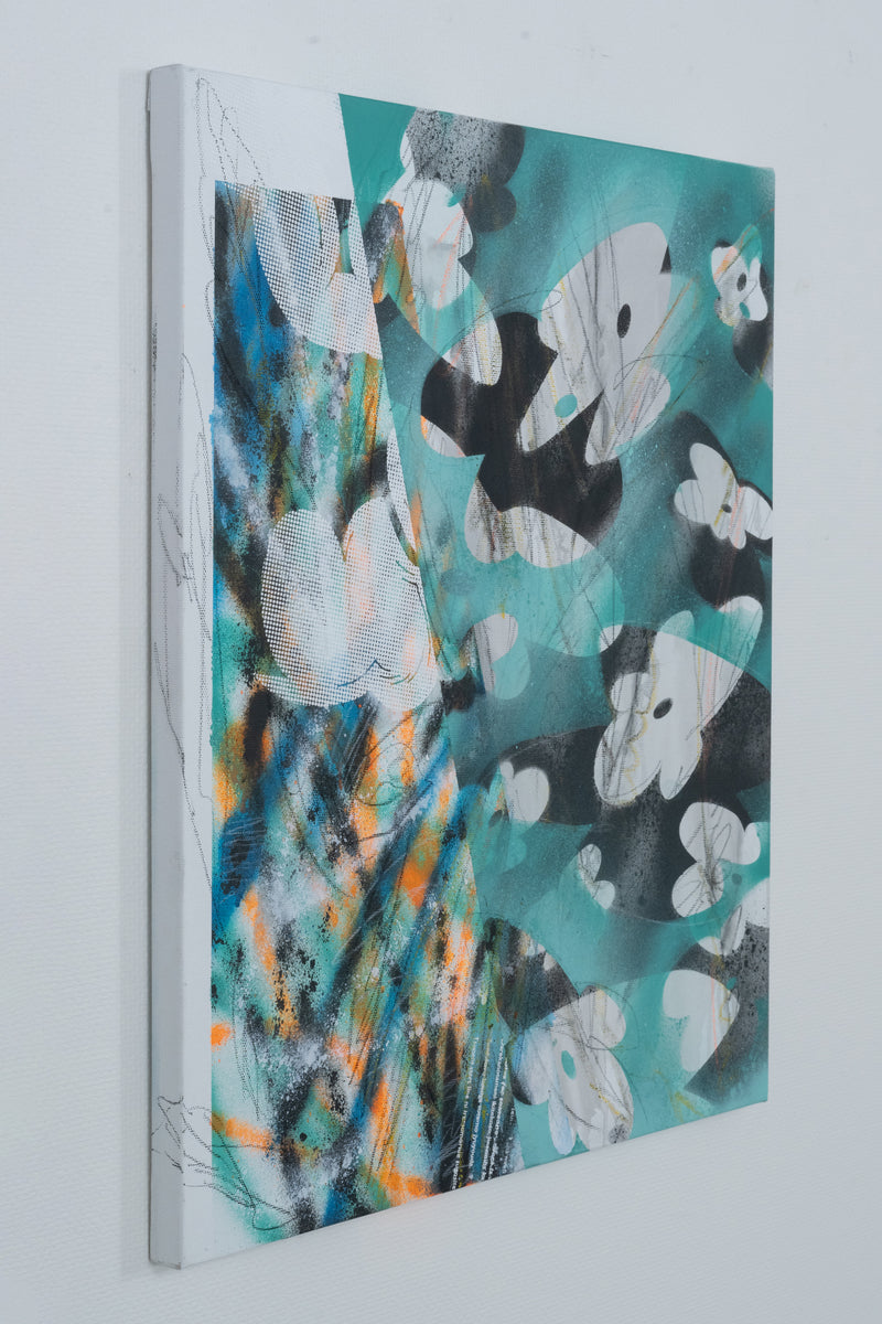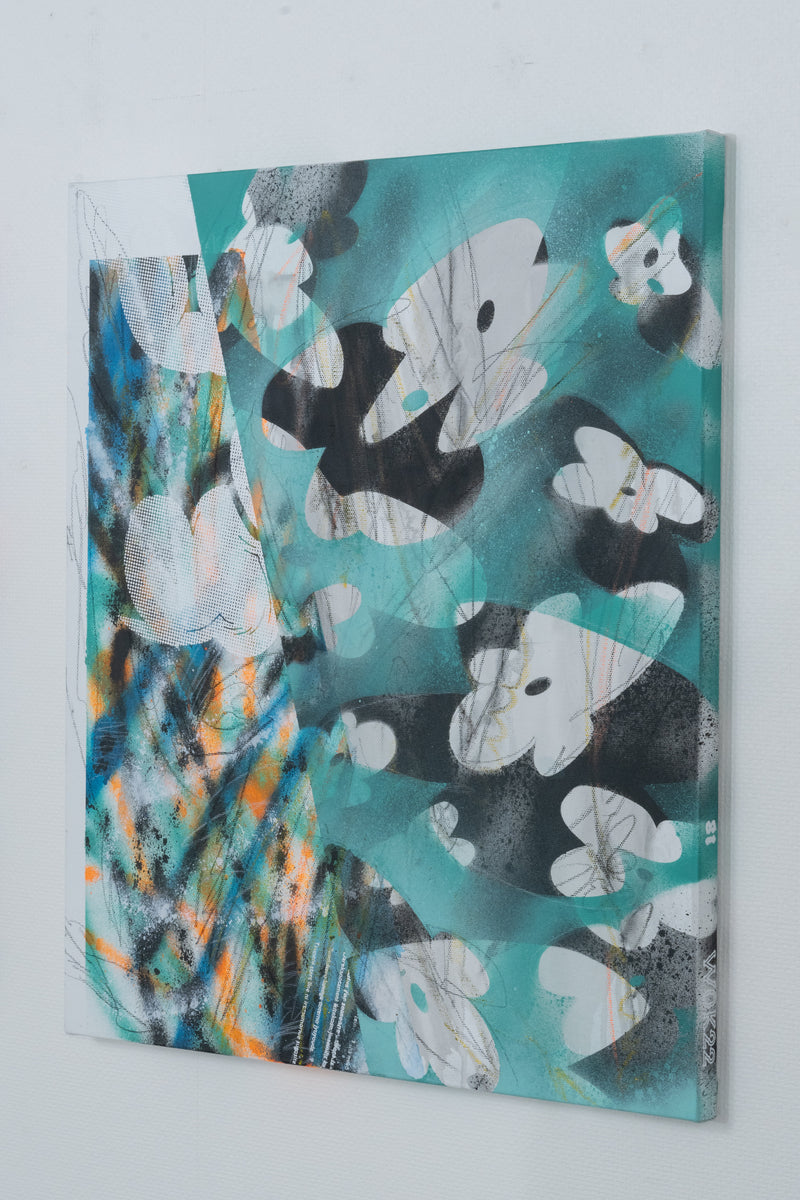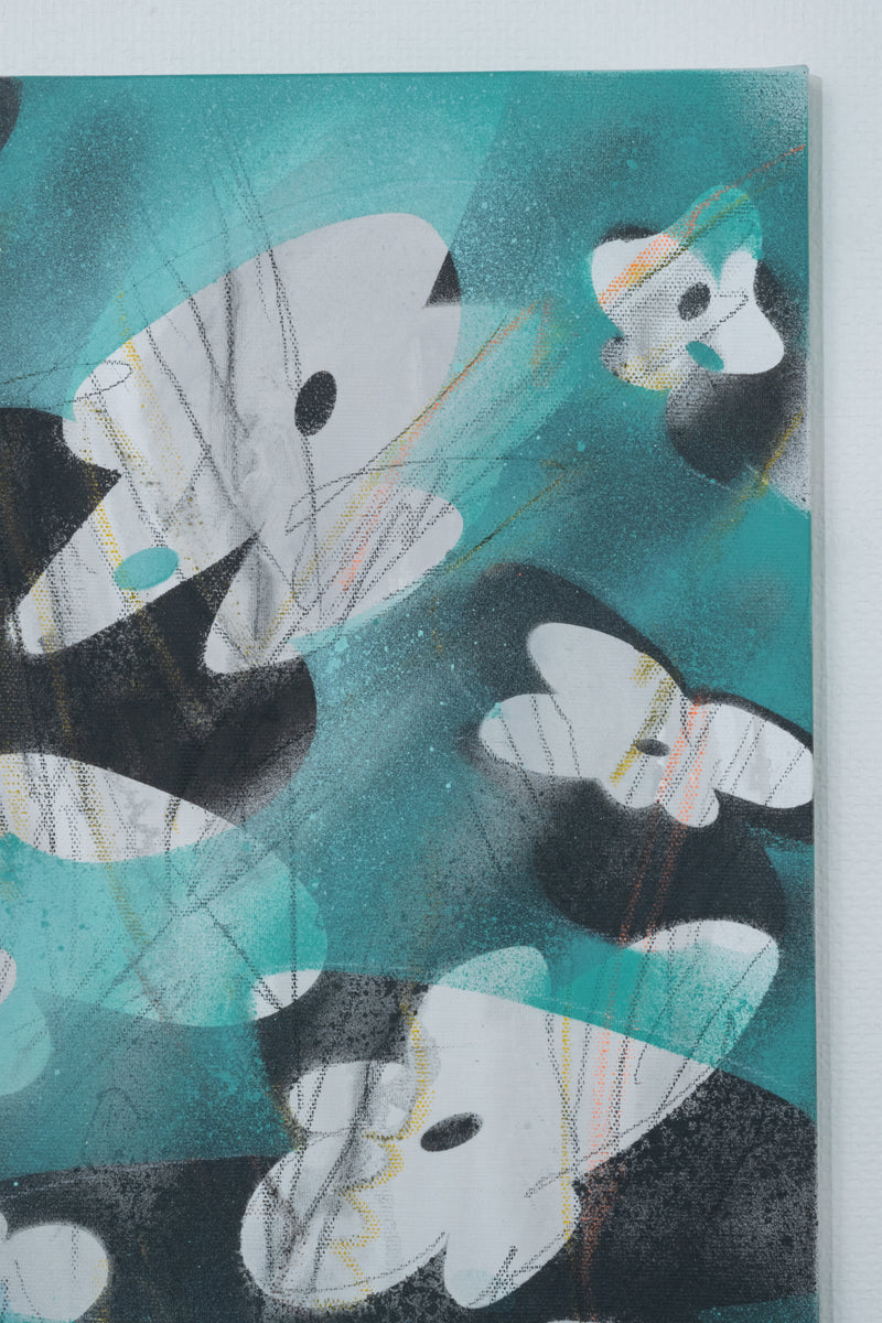 A "de" graffiti art work with the theme of "new harmony" so that the wind, the scent of flowers, and the hustle and bustle of the city gently mix.