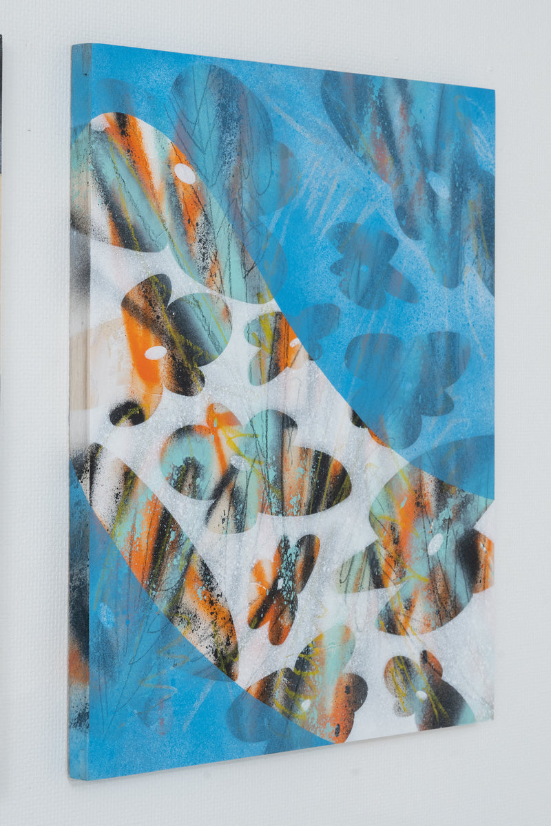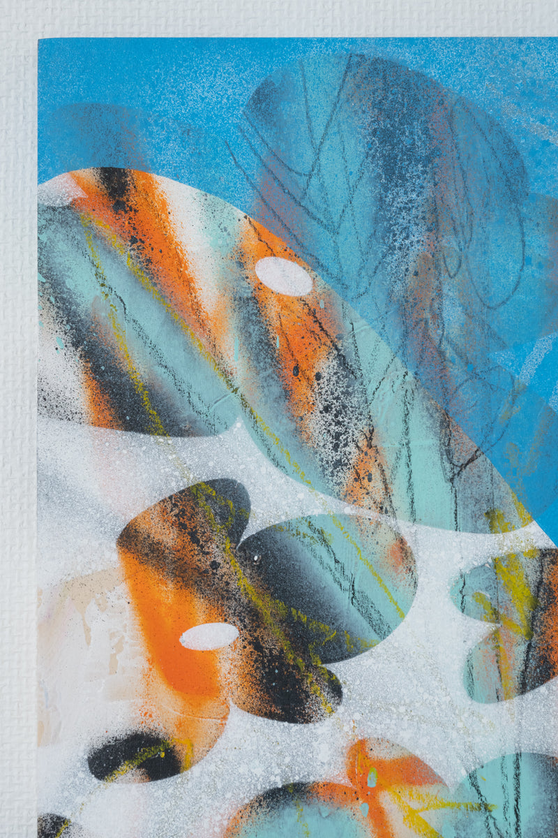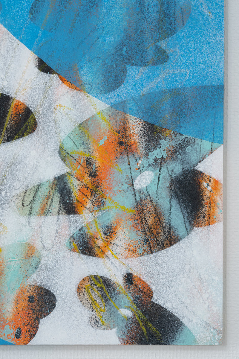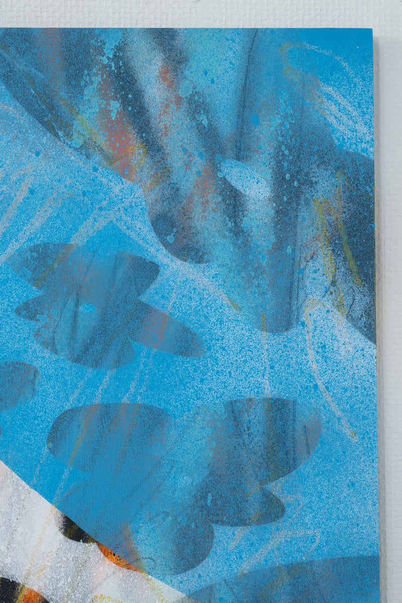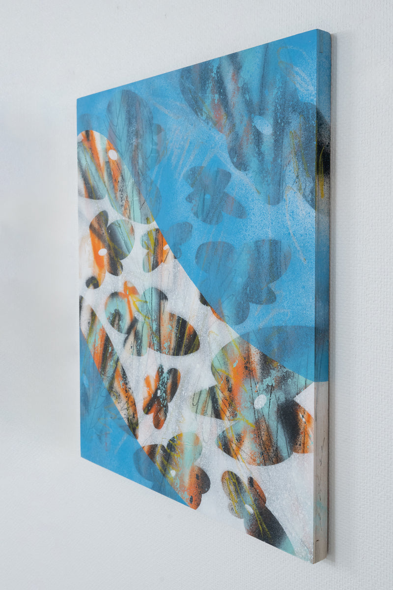 A "de" graffiti art work with the theme of "new harmony" so that the wind, the scent of flowers, and the hustle and bustle of the city gently mix.