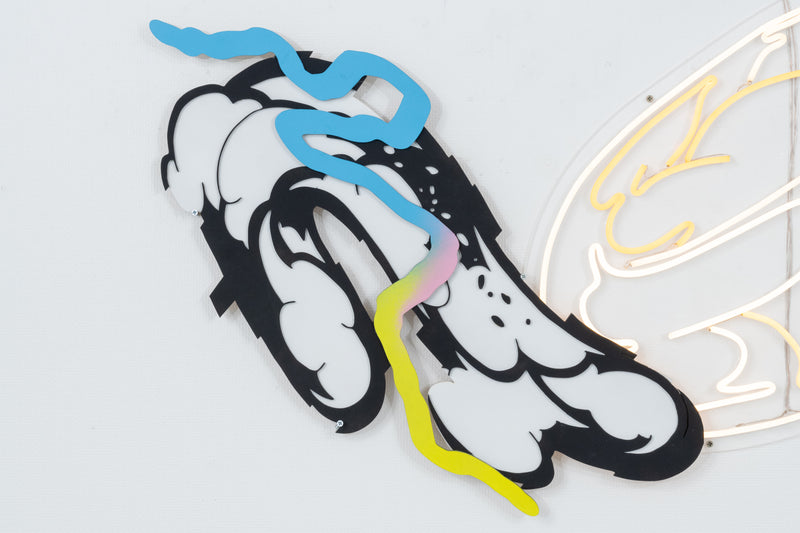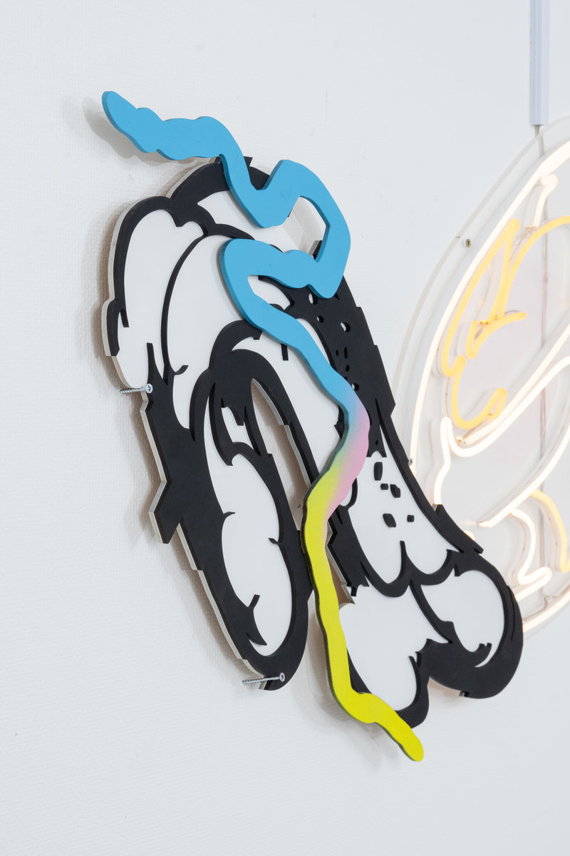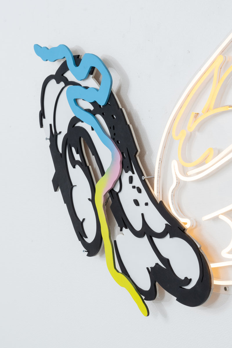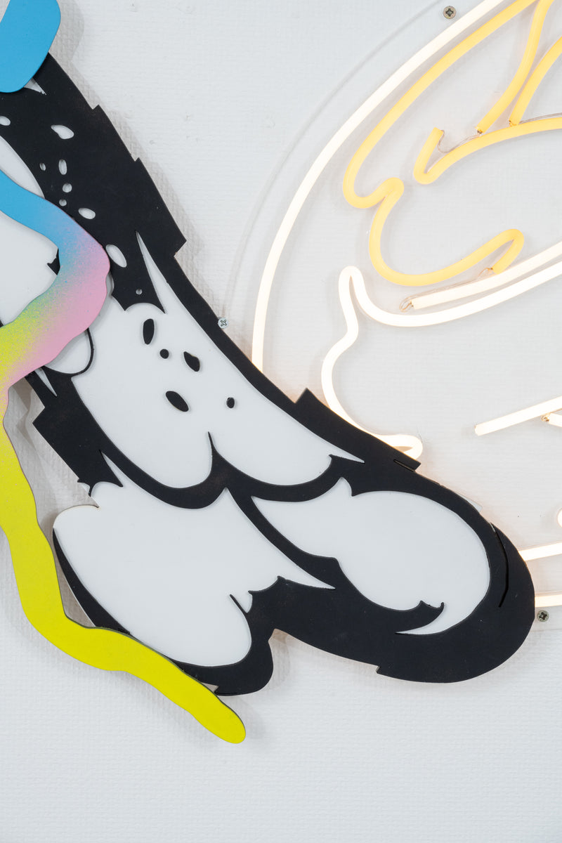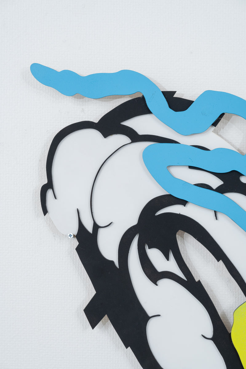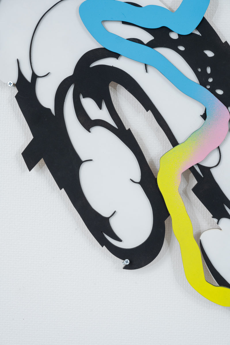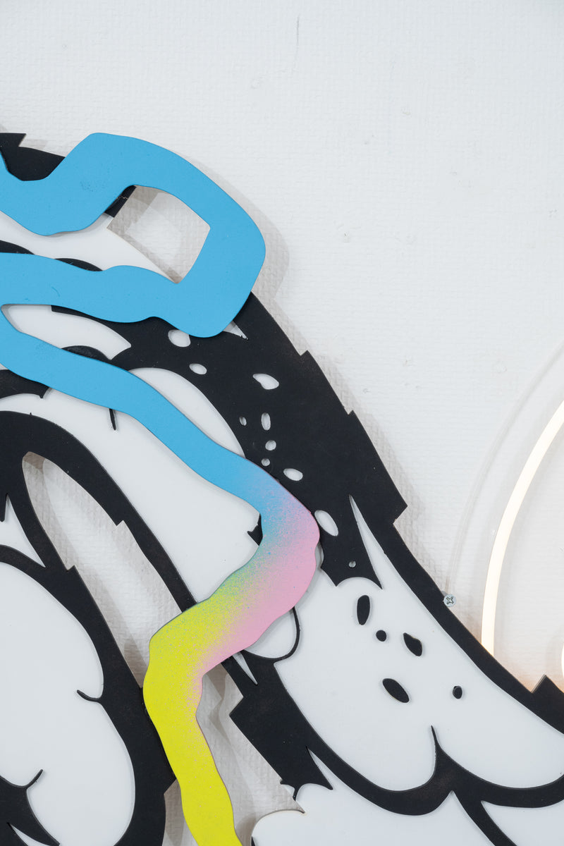 A "de" graffiti art work with the theme of "new harmony" so that the wind, the scent of flowers, and the hustle and bustle of the city gently mix.