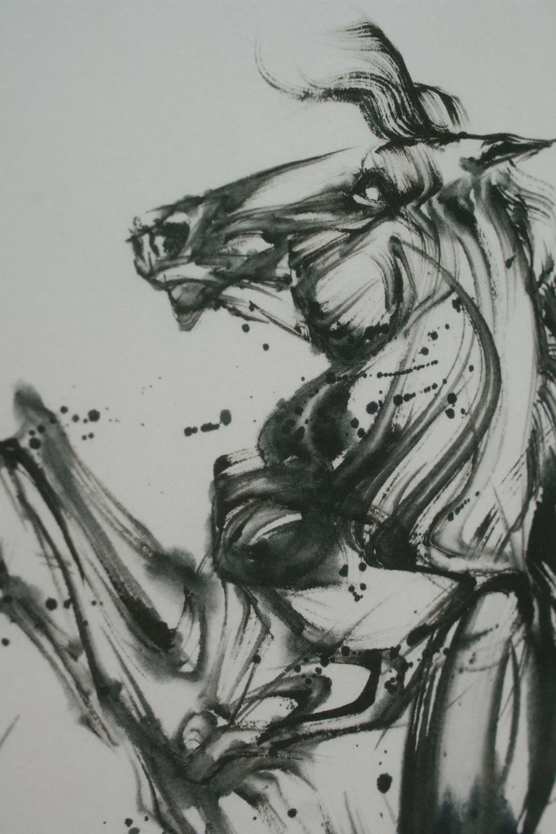 世界的に注目を集める墨絵アーティスト・西元祐貴が、2026年の干支「午」を題材に描いたジークレー作品。