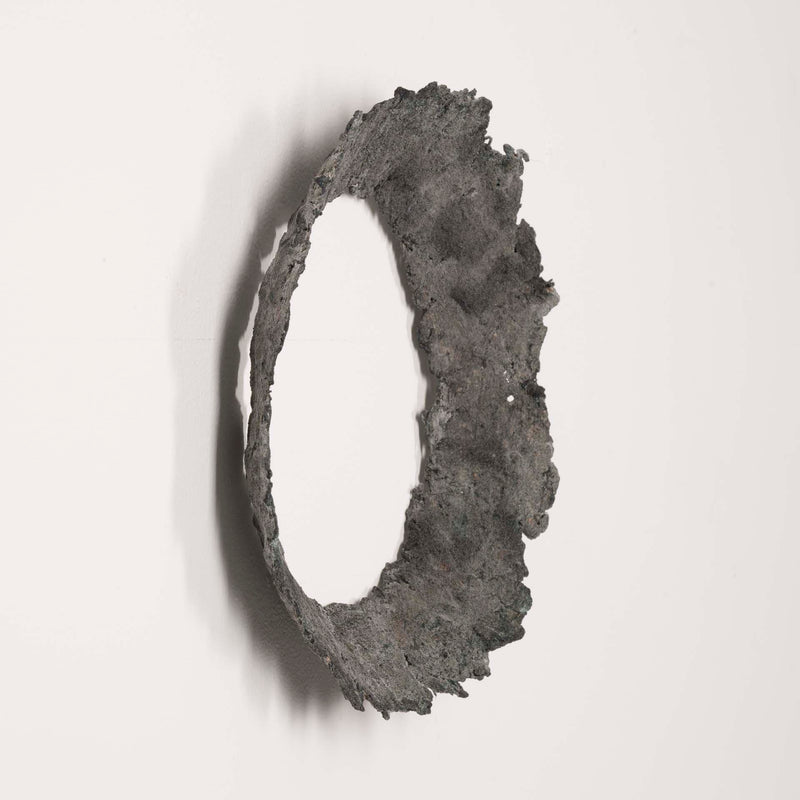 廃棄される和紙を素材に用い、再生と循環を主題とした作品。書道の練習書きに用いられ、役目を終えた上質な和紙を原料とし、着色や素材もすべて天然のものに限定することで、作品はやがて土へ還る運命を内包する。そこには、創造と消失を対立させるのではなく、循環の一部として捉え直す静かな思想が通底している。