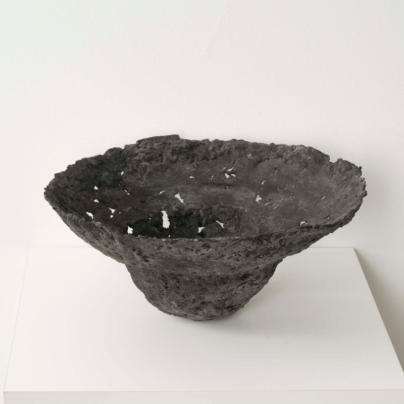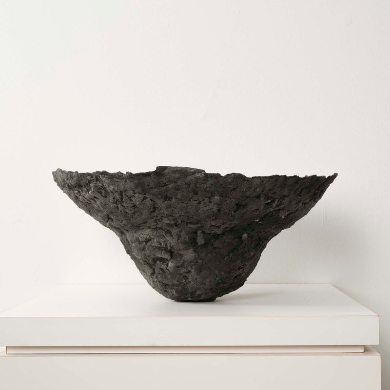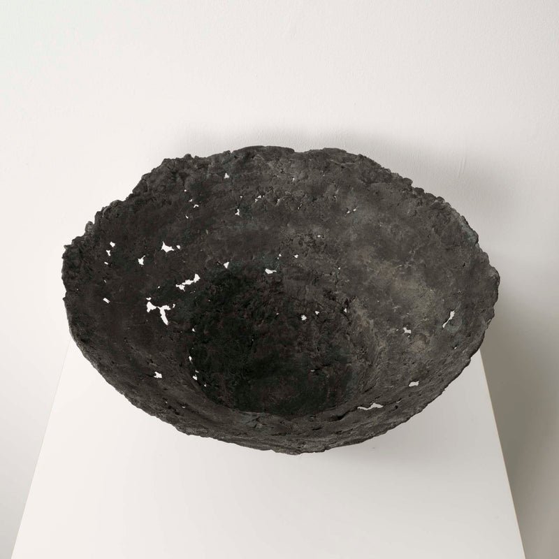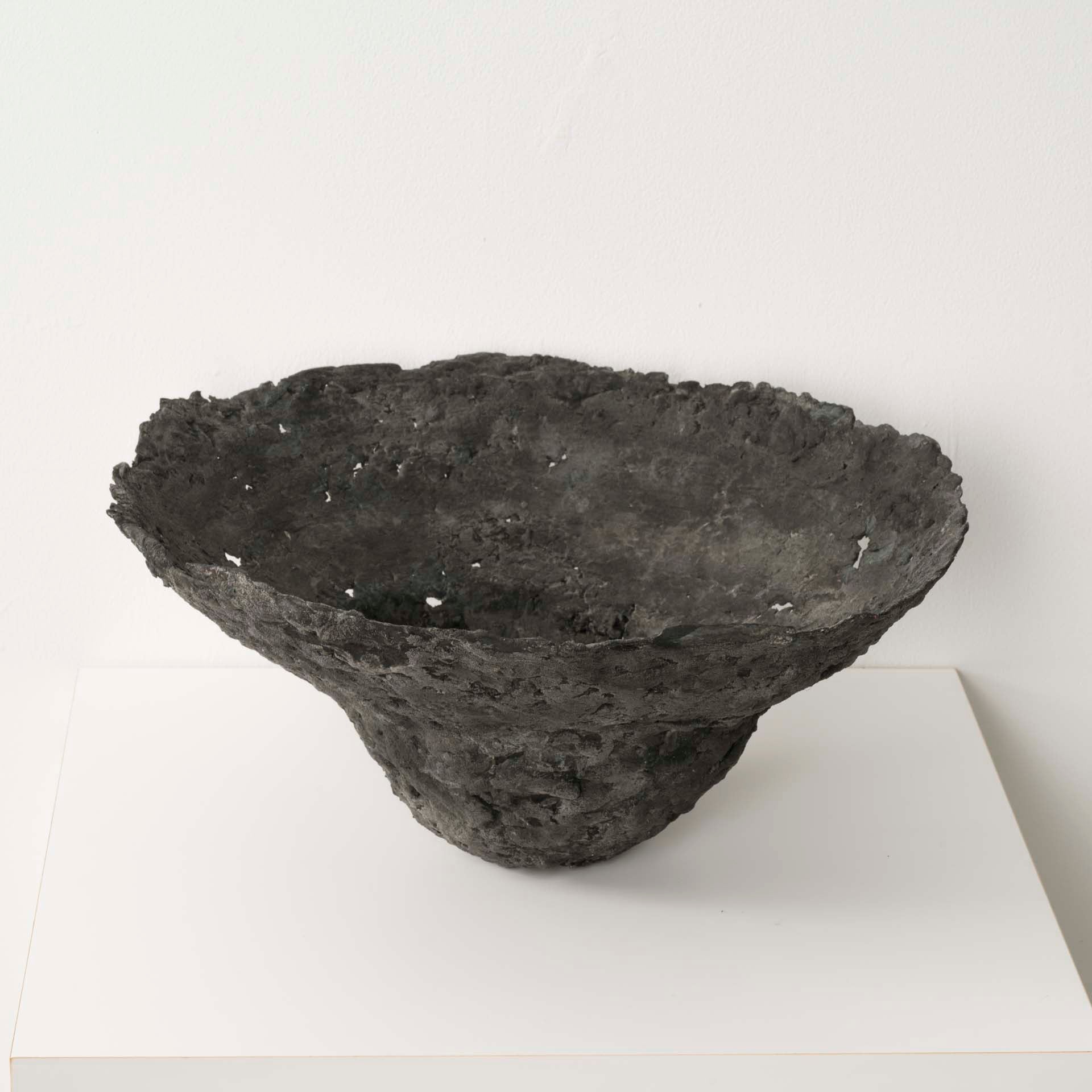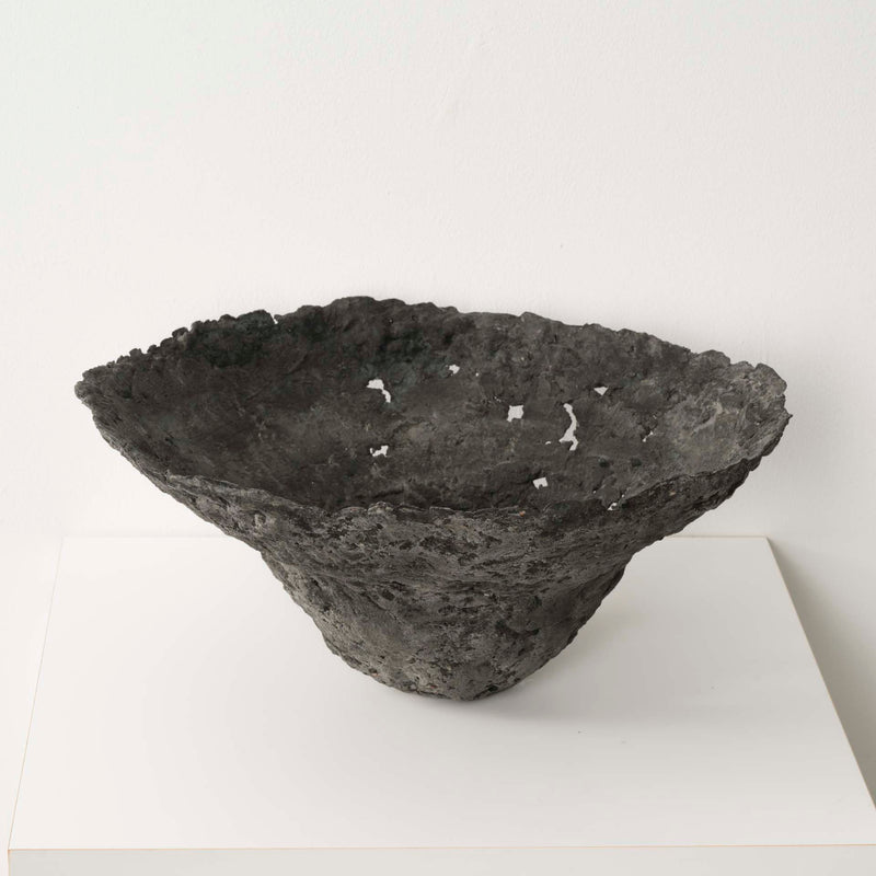 廃棄される和紙を素材に用い、再生と循環を主題とした作品。書道の練習書きに用いられ、役目を終えた上質な和紙を原料とし、着色や素材もすべて天然のものに限定することで、作品はやがて土へ還る運命を内包する。そこには、創造と消失を対立させるのではなく、循環の一部として捉え直す静かな思想が通底している。