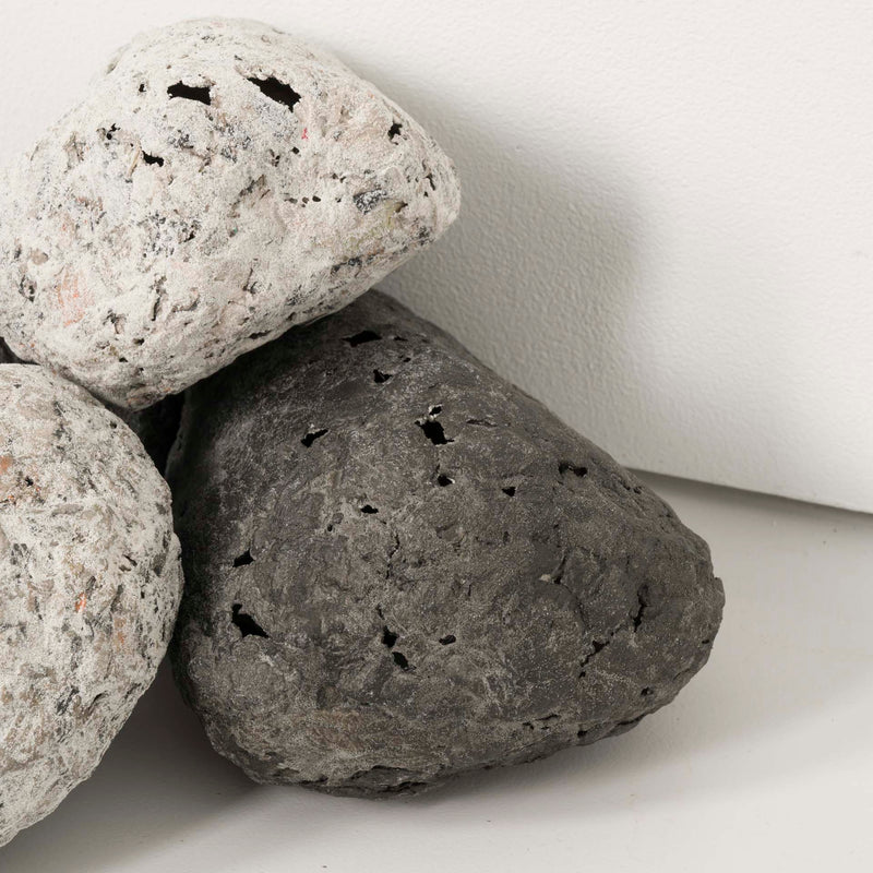 廃棄される和紙を素材に用い、再生と循環を主題とした作品。書道の練習書きに用いられ、役目を終えた上質な和紙を原料とし、着色や素材もすべて天然のものに限定することで、作品はやがて土へ還る運命を内包する。そこには、創造と消失を対立させるのではなく、循環の一部として捉え直す静かな思想が通底している。
