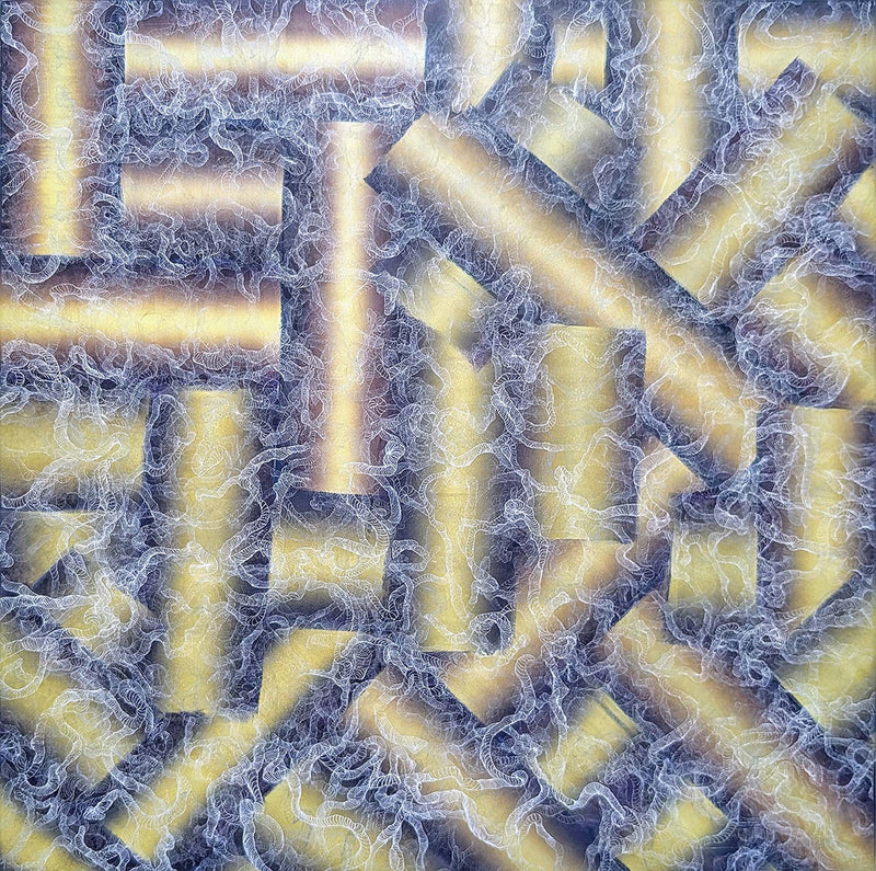 脳神経回路シリーズ《imagination Series》は重要な軸をなしています。本シリーズでは、MRIおよびMRAによって測定された自身の脳のデータを基に、神経回路や血管構造をモチーフとして版画で再構築します。