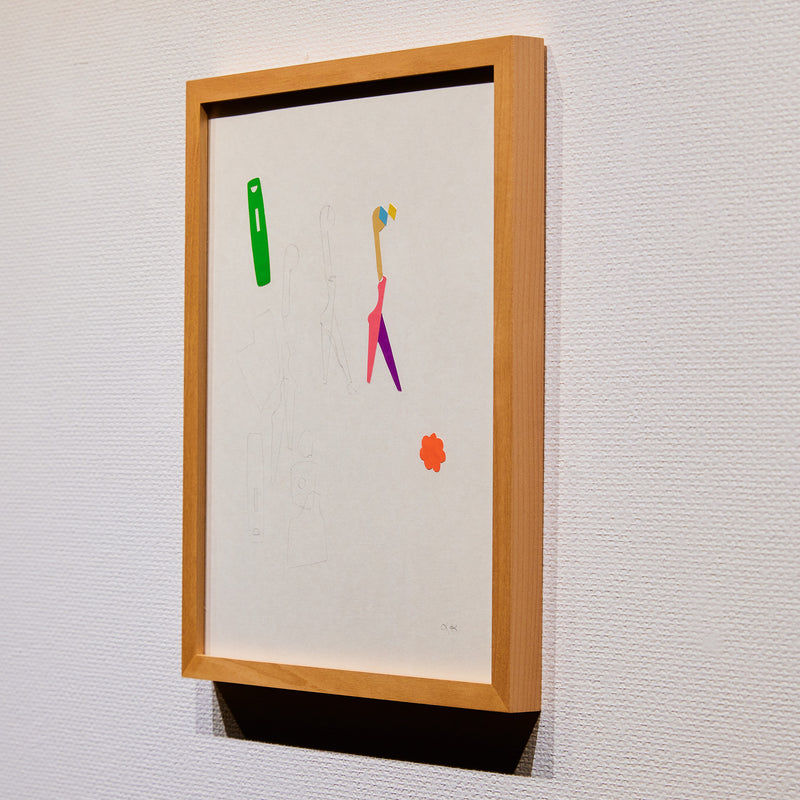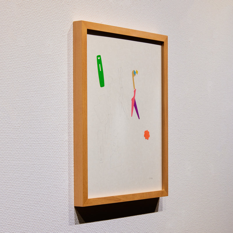 A fragment of something that looks like an animal's bone. Combining them creates a painting that looks like a melancholy portrait. Anthologian is an exhibition by stencil artist Kansuke Akaike, who tries to create poetic expressions by imagining small pieces of plastic washed ashore on the beach.