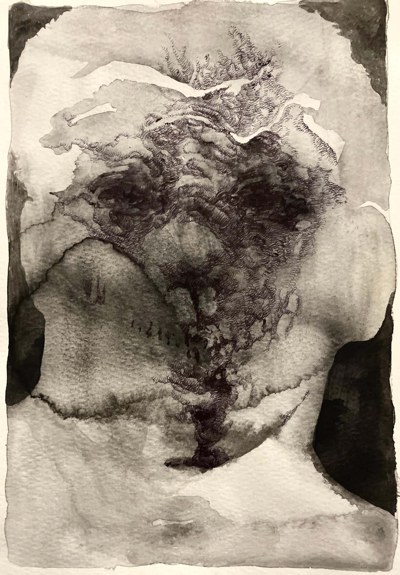 Keita Ando's work is characterized by depicting moments in which the boundary between life and death fluctuates, through images in which the body and the landscape seem to blend together. In this exhibition, "Scorching Heat and Decay / Freezing Cold and Germination," he uses fossil-like bird specimens and line drawings reminiscent of mountain ranges and blood vessels to overlap different periods of life: growth and decay, freezing and preservation. This expression brings to light a sense of "the golden mean" that is not biased toward either life or death, and by juxtaposing new works with works by contemporary artists, he presents painting as a form of expression that is constantly changing in relation to others.