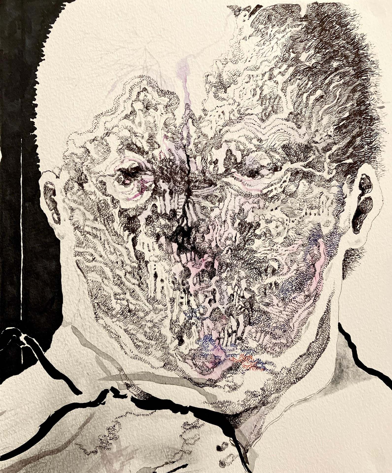 Keita Ando's work is characterized by depicting moments in which the boundary between life and death fluctuates, through images in which the body and the landscape seem to blend together. In this exhibition, "Scorching Heat and Decay / Freezing Cold and Germination," he uses fossil-like bird specimens and line drawings reminiscent of mountain ranges and blood vessels to overlap different periods of life: growth and decay, freezing and preservation. This expression brings to light a sense of "the golden mean" that is not biased toward either life or death, and by juxtaposing new works with works by contemporary artists, he presents painting as a form of expression that is constantly changing in relation to others.