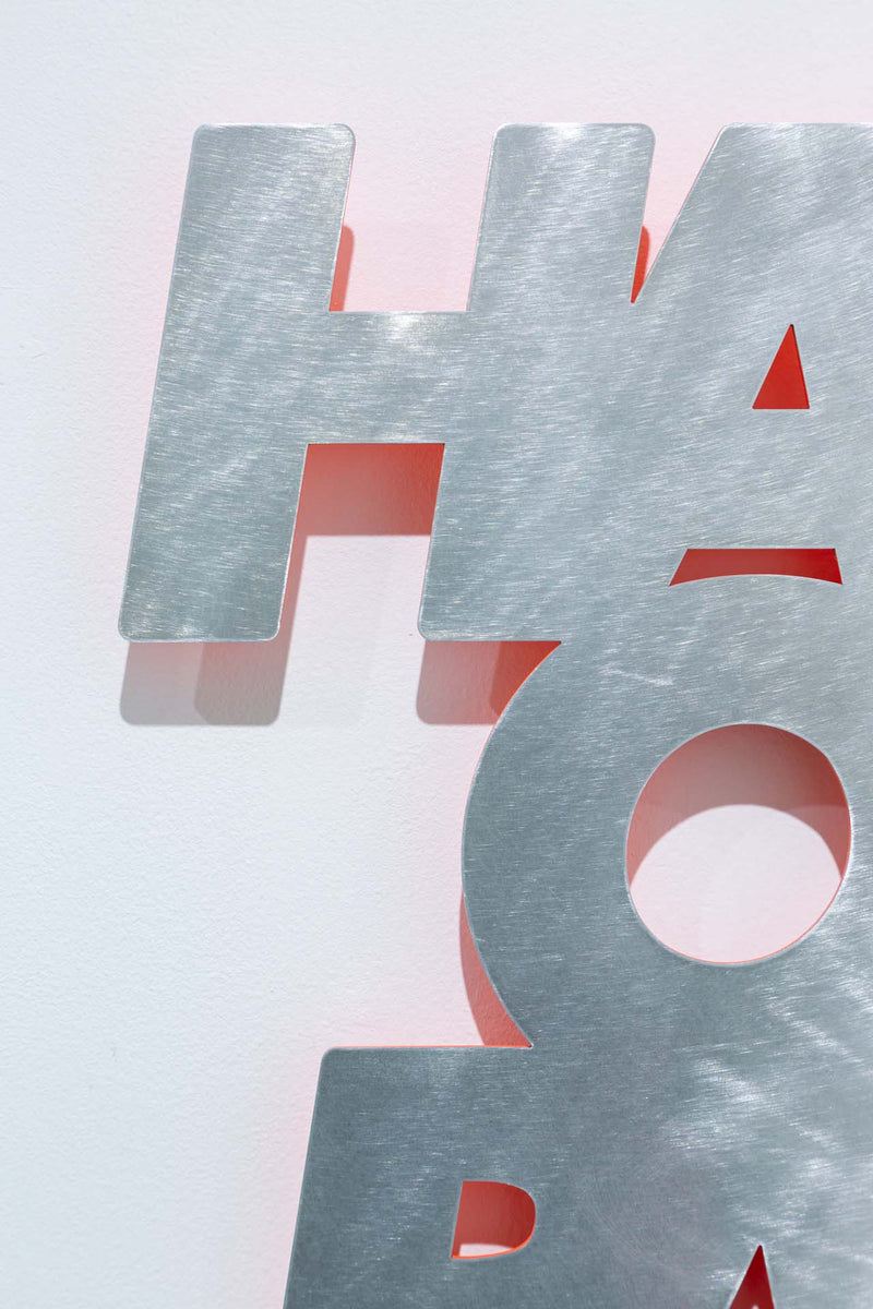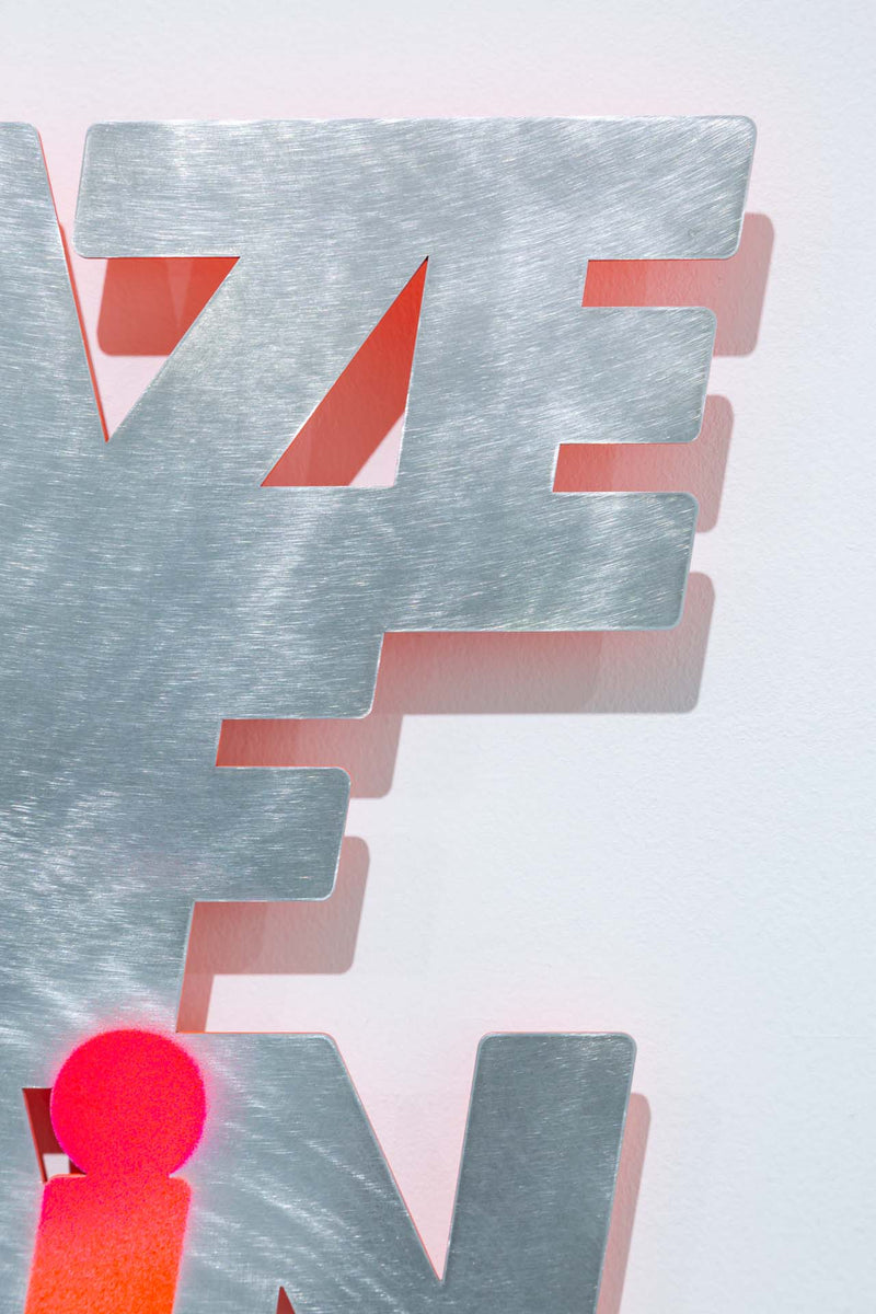 Inspired by demonstration placards and social voices, this exhibition transforms the letters themselves into three-dimensional objects, reconstructing words from something to be read to something to be held up. The presence of light, shadow, and shape created by aluminum and acrylic further highlights the thoughts and wishes contained in these short words. Kitayama layers the weight of human emotions and reality into simple words that everyone knows, quietly asking how we should face society.