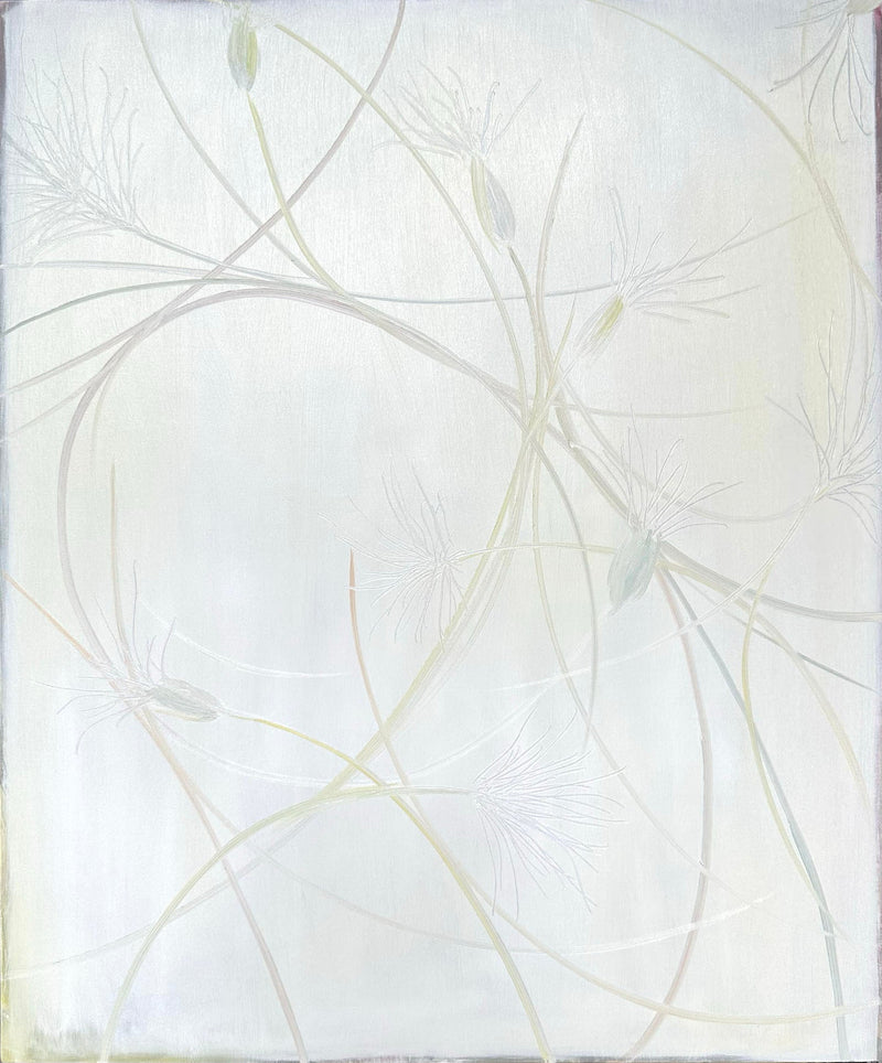 The artist moves his brush as he is guided by the sensations he receives from plants, and the gentle curves are the song of nature that the artist hears. Artist and flower artist ruteN accepts what he feels from the changing nature, cherishes it, and puts this beauty that only exists in this moment onto the canvas. A work exhibited at ruteN's solo exhibition "impermanence."