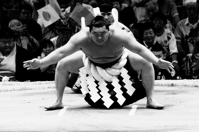 30年以上にわたりミュージシャンやアーティストといった伝説的アイコンを撮り続けてきた写真家、緒方秀美の写真展「横綱 白鵬」販売作品。