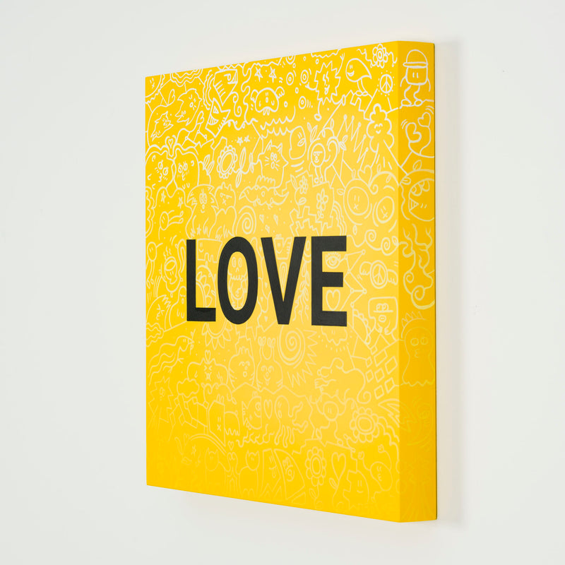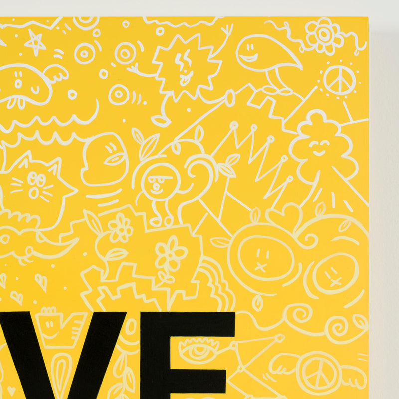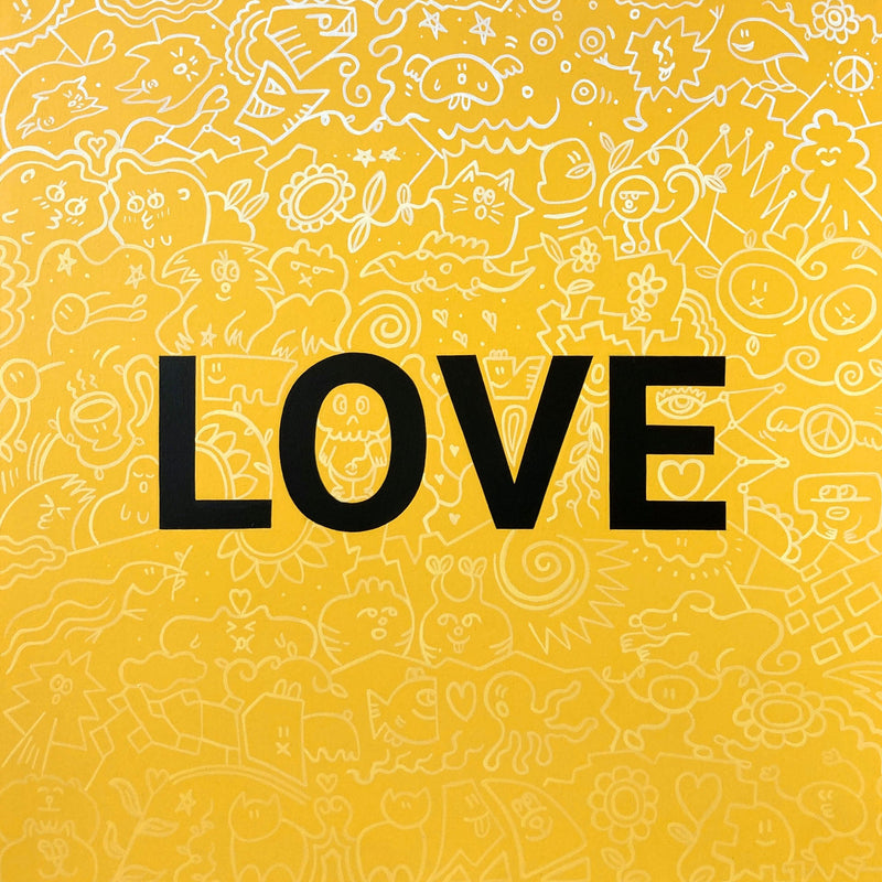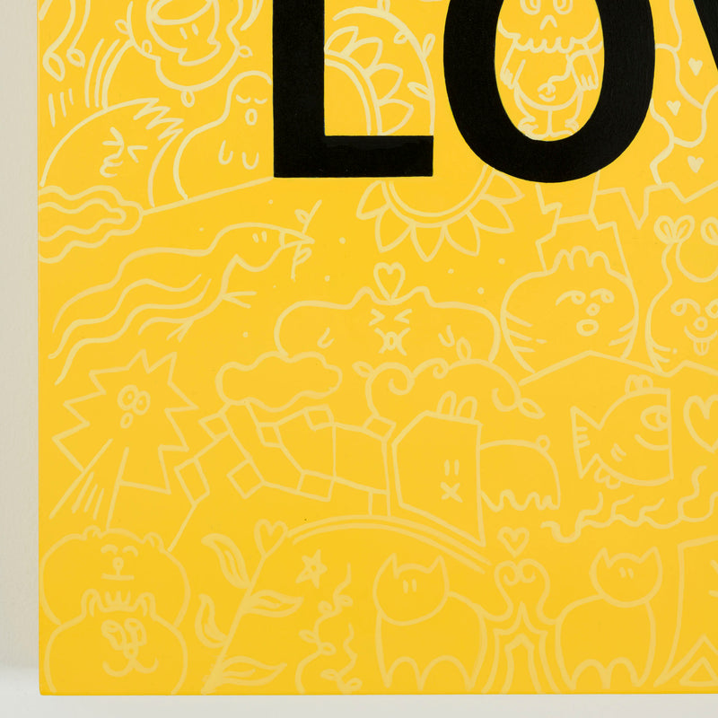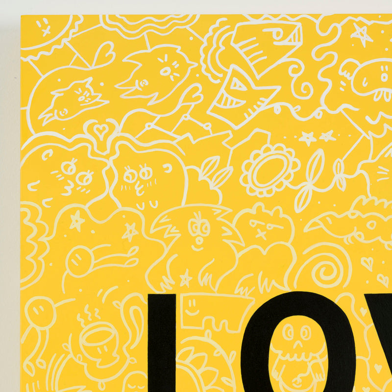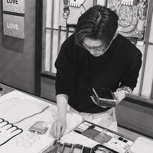鈴木潤は、ポップな線描を特徴とした現代アーティストです。陶芸家の父の影響から幼い頃から様々なアートに触れ絵を描き始めました。生と死や、愛についてポジティブなメッセージを表現し、鑑賞者や未来を生きる人々との心の繋がりができたらという思いを作品に込めています。