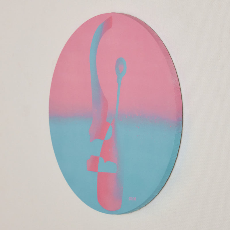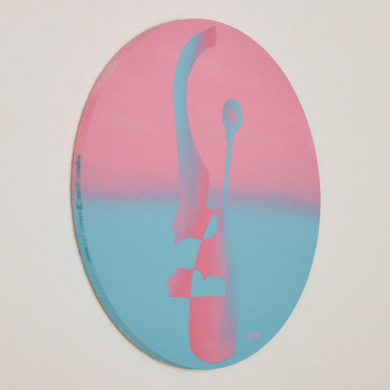 動物の骨のような形の何かが割れた破片。それらを組み合わせると哀愁漂う肖像画のような絵画が現れる。海辺に漂着した小さなプラスチック片から想像し、詩的な表現を試みるステンシル・アーティスト、赤池完介による展覧会「ANTHOLOGIAN」。