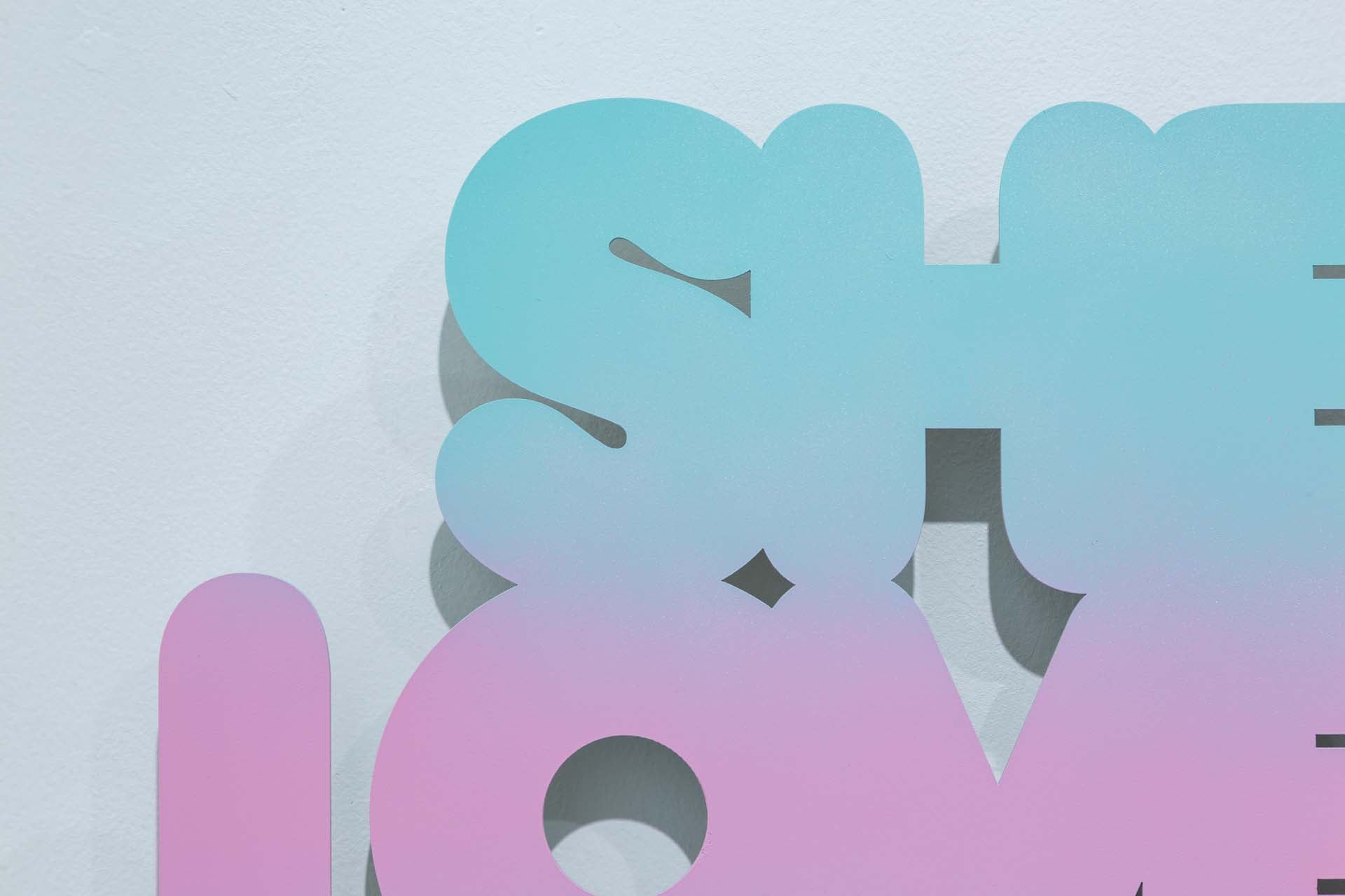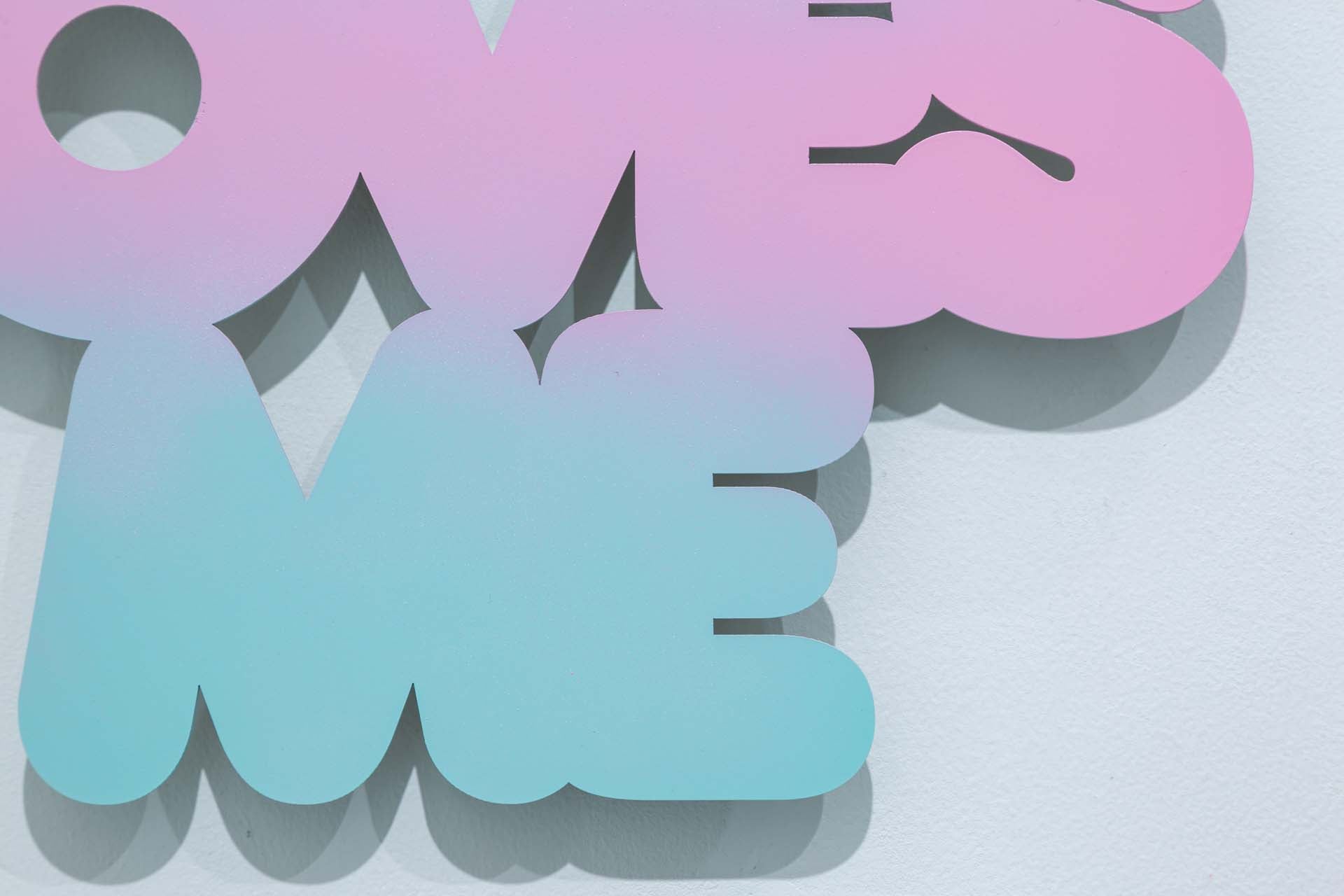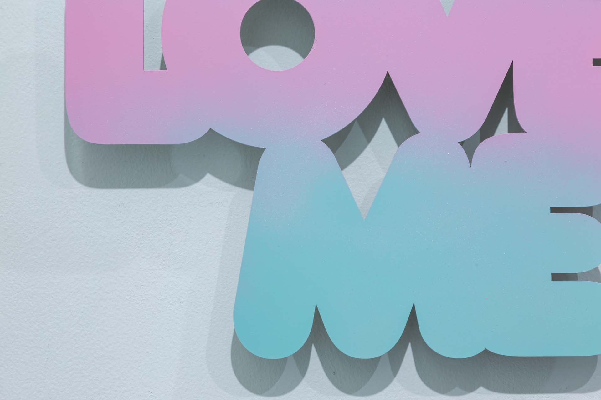 本展では、デモのプラカードや社会の声から着想を得ながら、文字そのものを立体化し、言葉を“読むもの”から“掲げるもの”へと再構築している。アルミやアクリルが生む光や影、形の存在感が、短い言葉に込められた思いや願いをより強く際立たせる。北山は、誰もが知るシンプルな言葉に人の感情や現実の重みを重ね、私たちが社会とどう向き合うのかを静かに問いかけている。