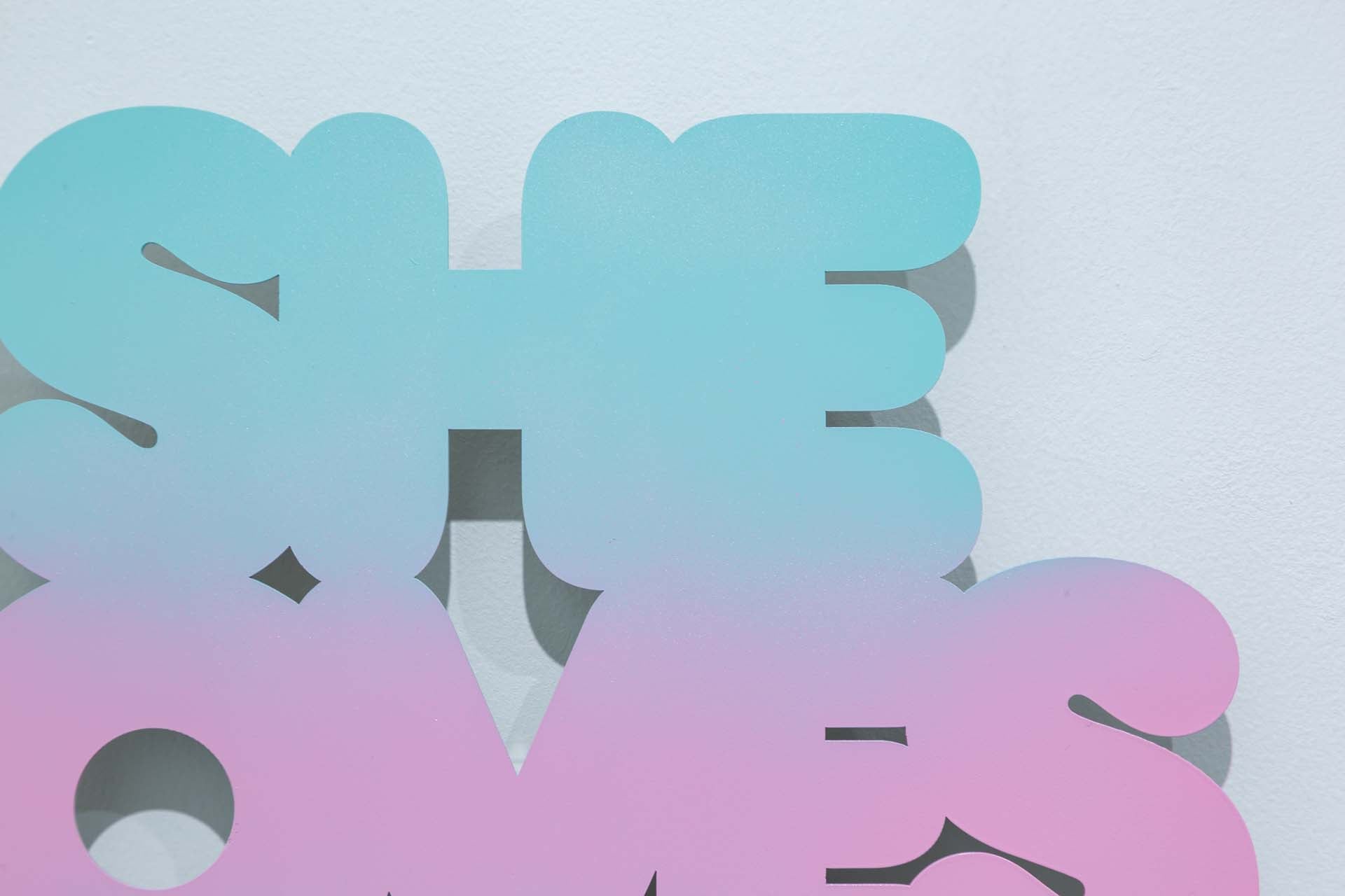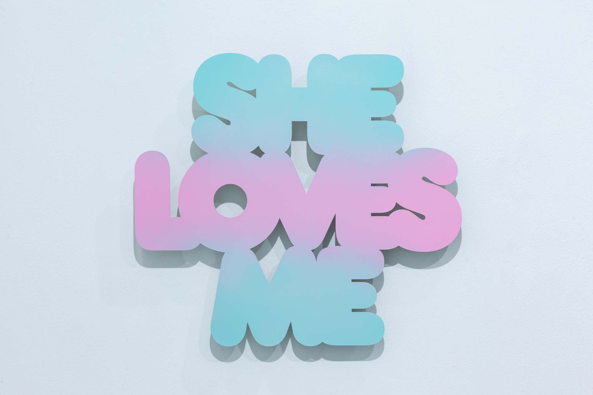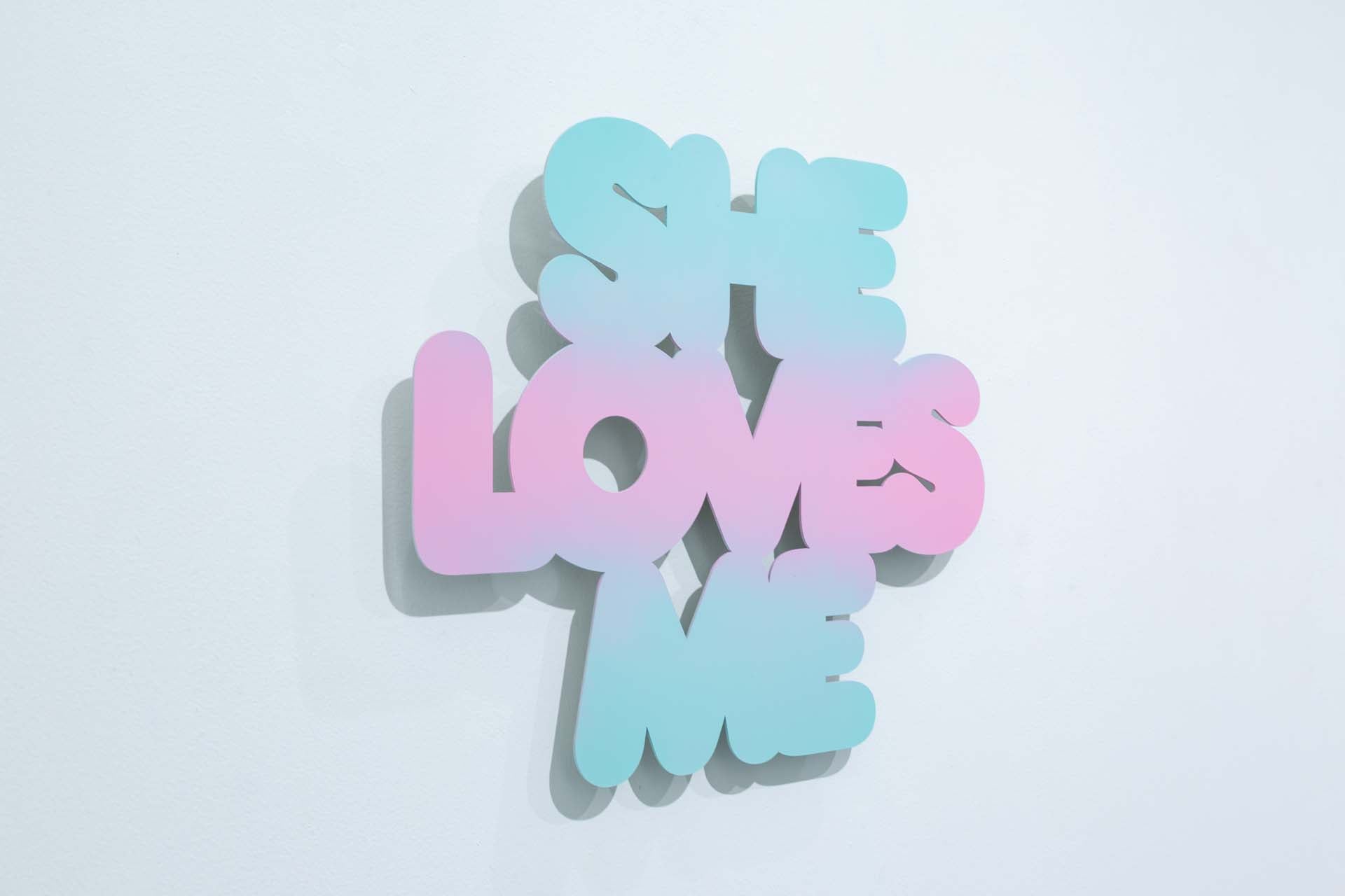 本展では、デモのプラカードや社会の声から着想を得ながら、文字そのものを立体化し、言葉を“読むもの”から“掲げるもの”へと再構築している。アルミやアクリルが生む光や影、形の存在感が、短い言葉に込められた思いや願いをより強く際立たせる。北山は、誰もが知るシンプルな言葉に人の感情や現実の重みを重ね、私たちが社会とどう向き合うのかを静かに問いかけている。