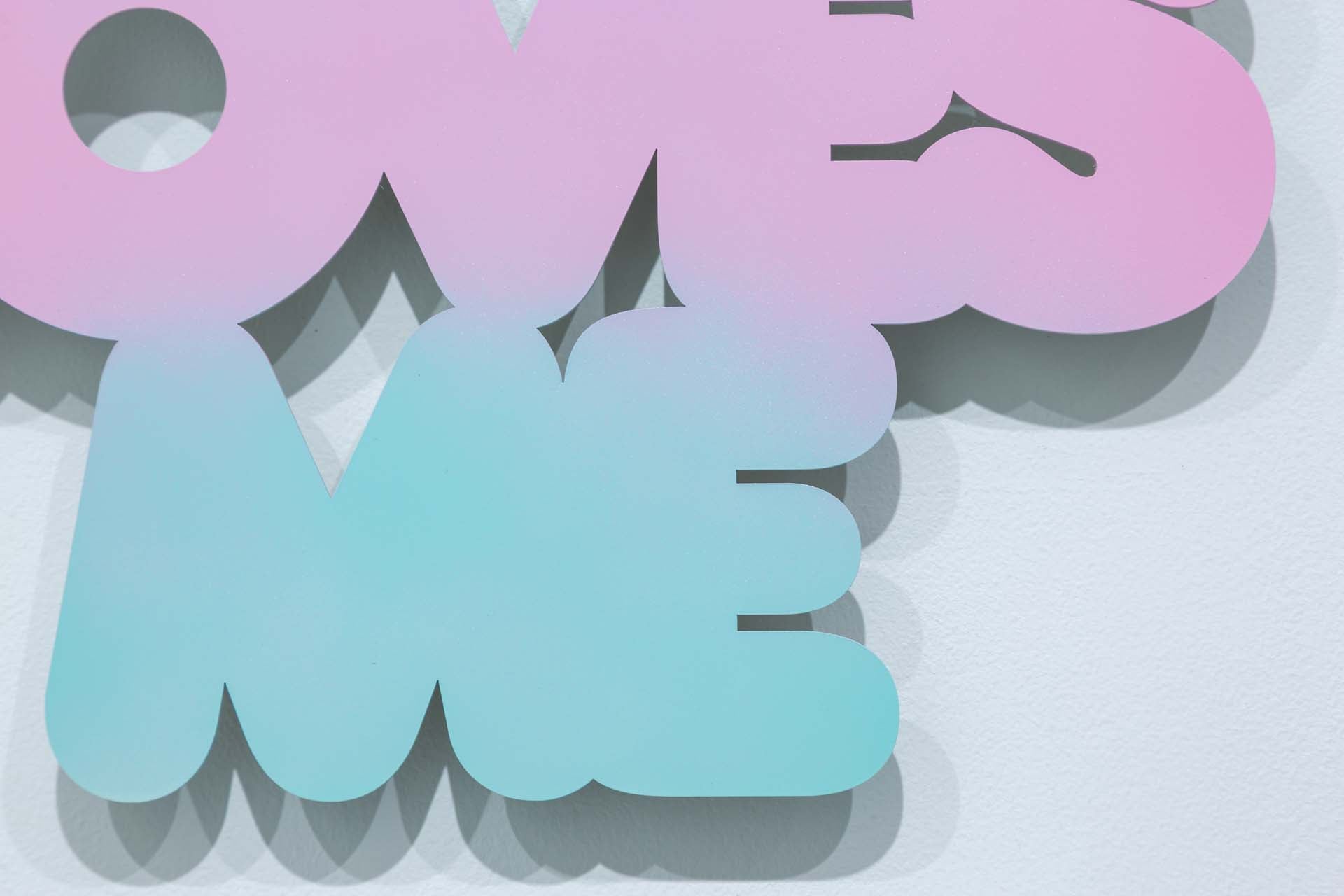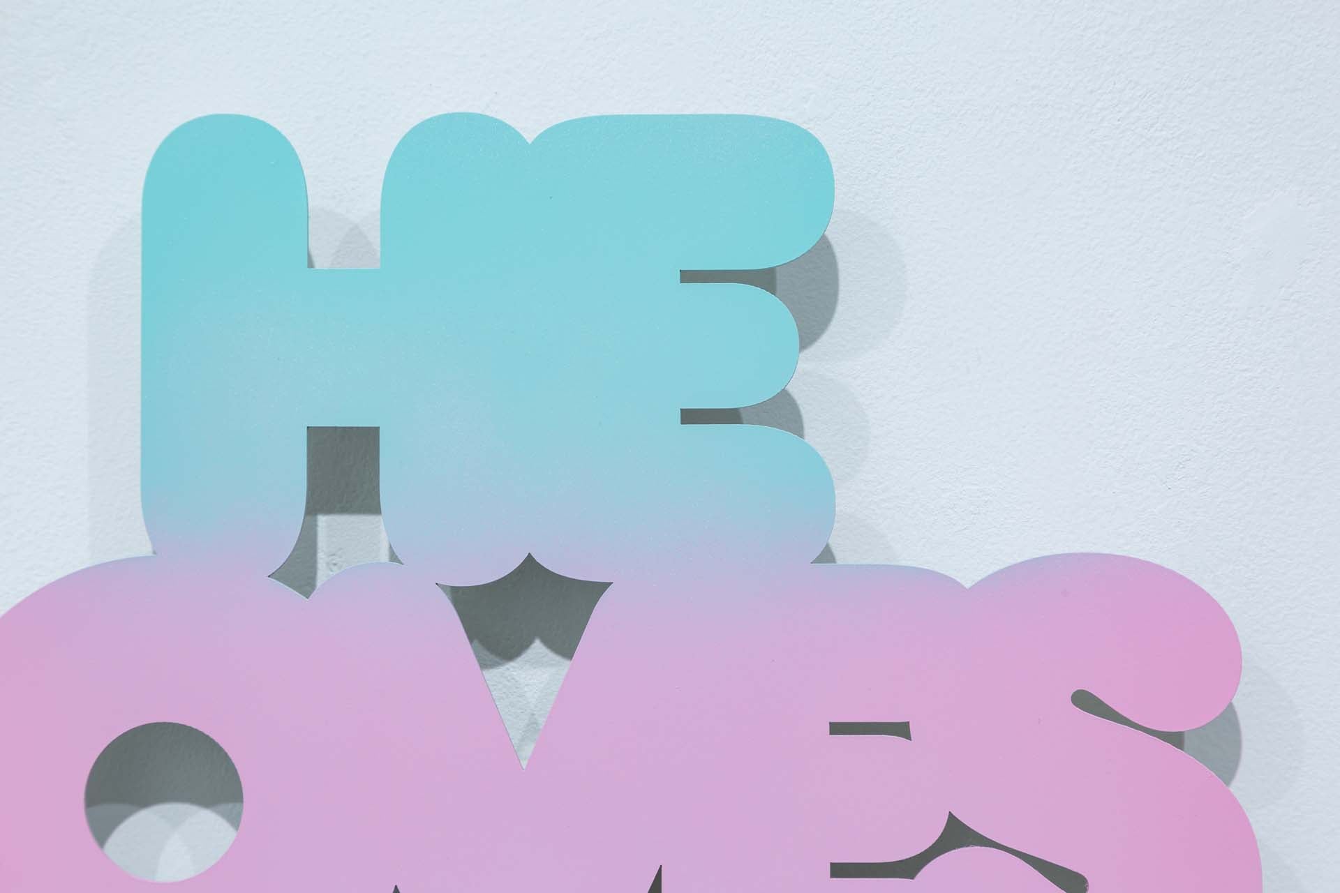 本展では、デモのプラカードや社会の声から着想を得ながら、文字そのものを立体化し、言葉を“読むもの”から“掲げるもの”へと再構築している。アルミやアクリルが生む光や影、形の存在感が、短い言葉に込められた思いや願いをより強く際立たせる。北山は、誰もが知るシンプルな言葉に人の感情や現実の重みを重ね、私たちが社会とどう向き合うのかを静かに問いかけている。