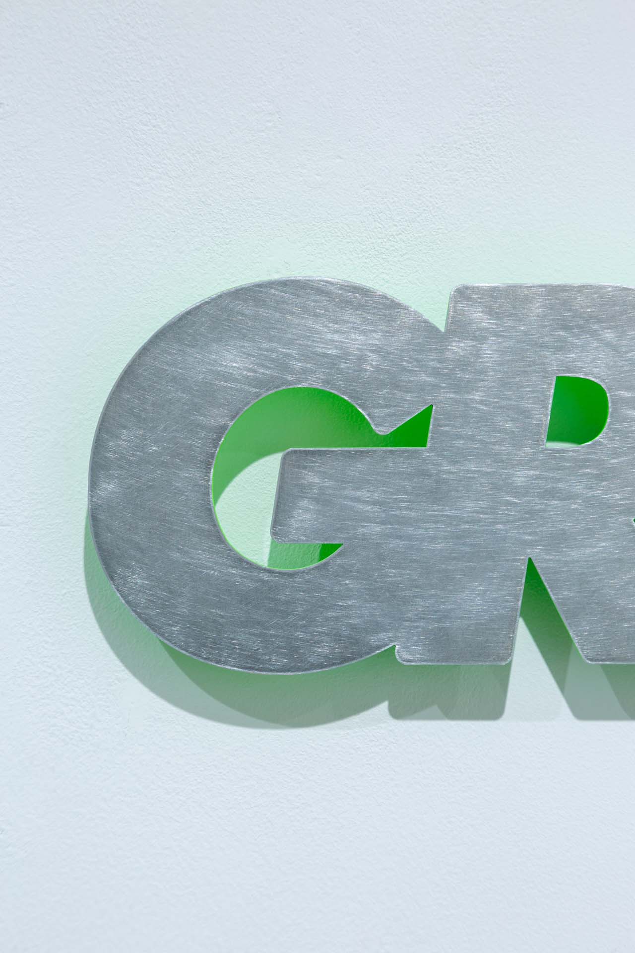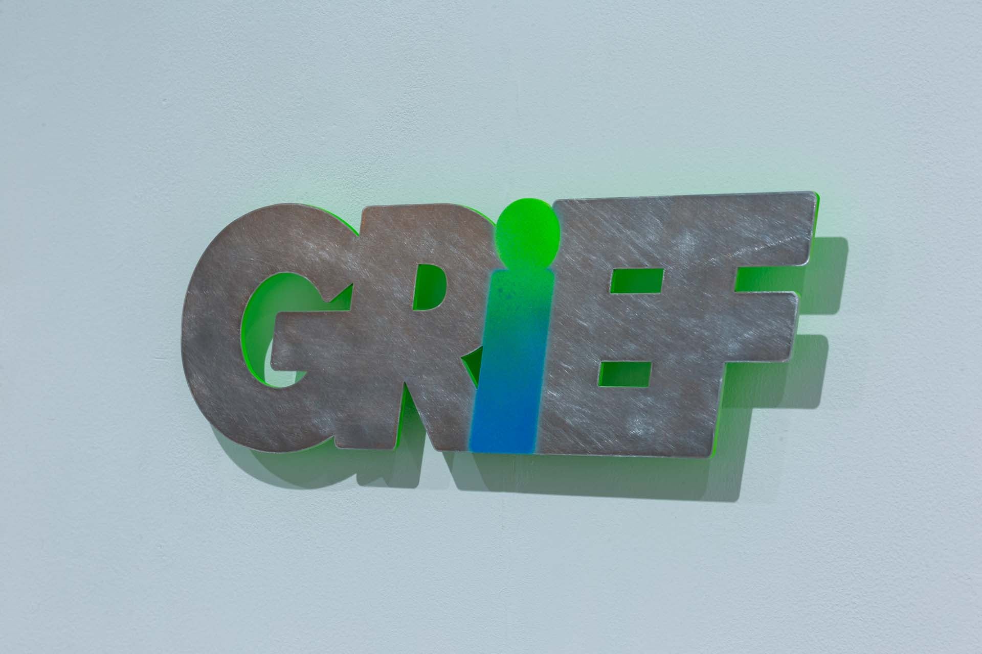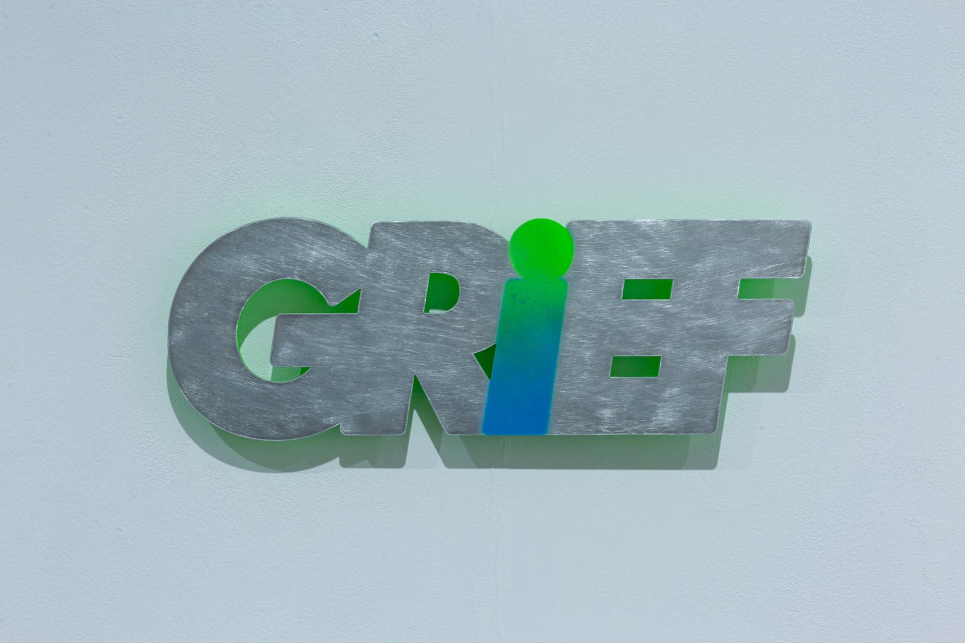 本展では、デモのプラカードや社会の声から着想を得ながら、文字そのものを立体化し、言葉を“読むもの”から“掲げるもの”へと再構築している。アルミやアクリルが生む光や影、形の存在感が、短い言葉に込められた思いや願いをより強く際立たせる。北山は、誰もが知るシンプルな言葉に人の感情や現実の重みを重ね、私たちが社会とどう向き合うのかを静かに問いかけている。