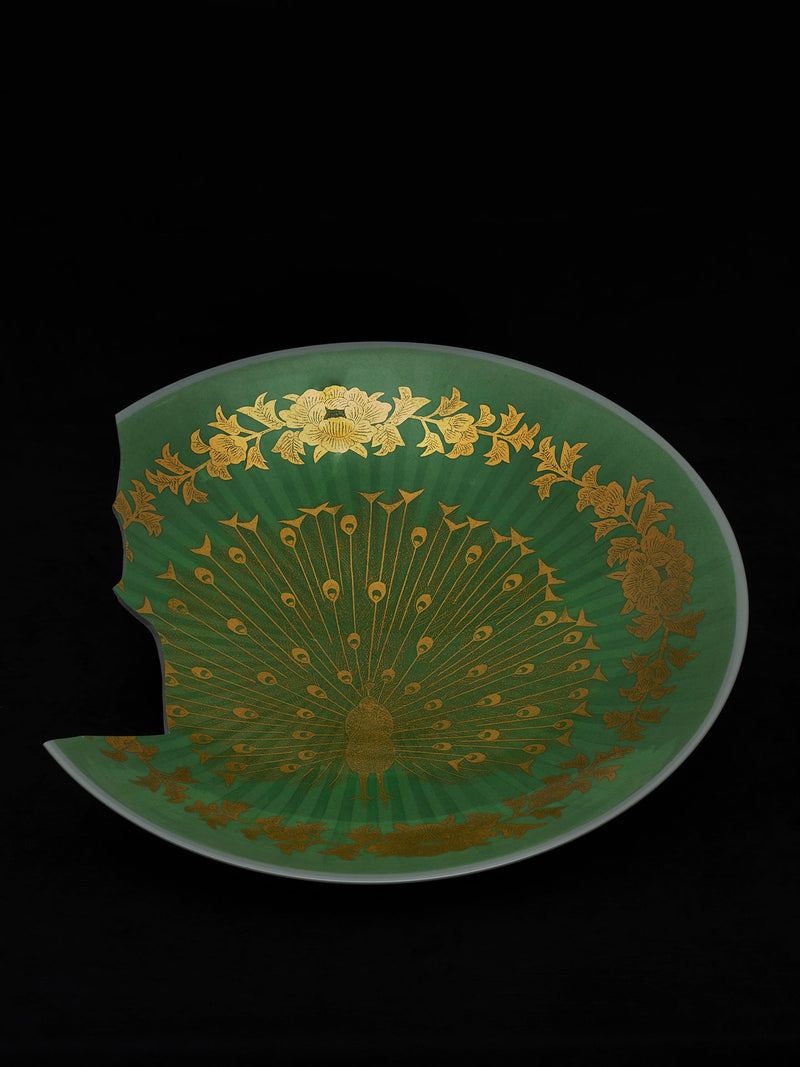 釉裏金彩孔雀文 飾皿