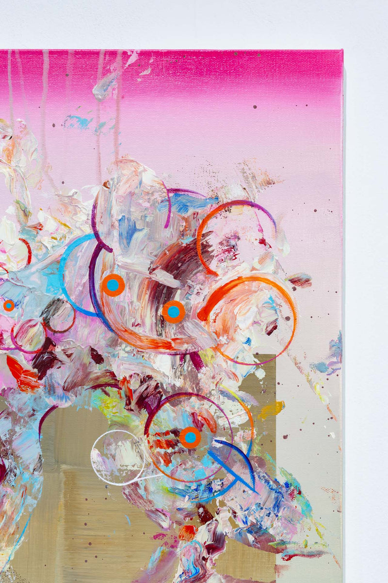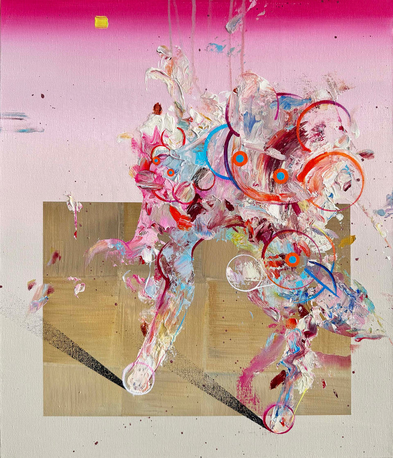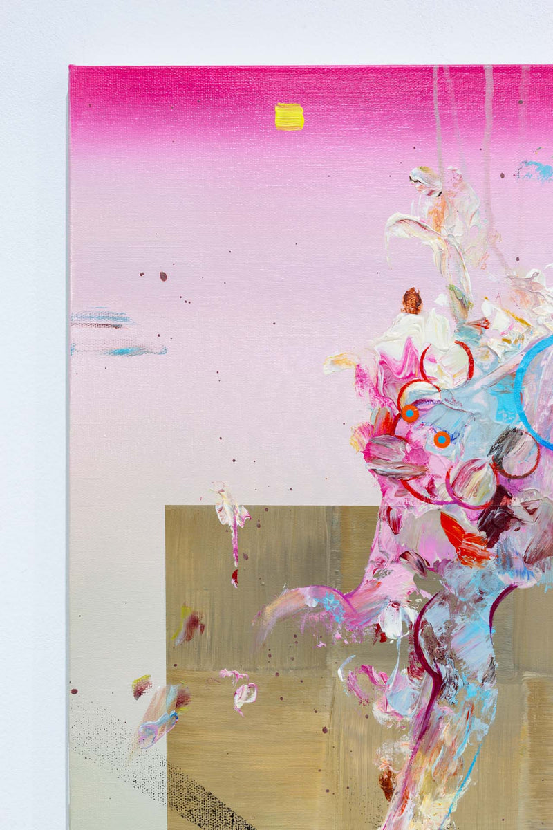 大河紀の作品は、浮世絵の概念を現代の感性で再解釈することを特徴としている。《FAMILY》シリーズでは、自己形成の過程をテーマに、既成概念の外にある「異物」との出会いを通して自我が形づくられていく様を表現している。 異なる価値観を受け入れ、噛みしめ、飲み込み、やがて腹の底に落とし込むようにして、人は自らの輪郭を得ていく。ここでの「ファミリー」とは、血縁に限られた枠組みではなく、異なる文化や宗教、偶然の出会いまでも含んだ関係性の総体である。多様な他者との交わりの中で生まれる自己のかたちを、大河は現代の“浮世”として描き出している。