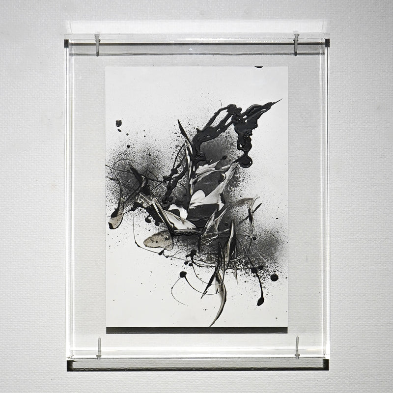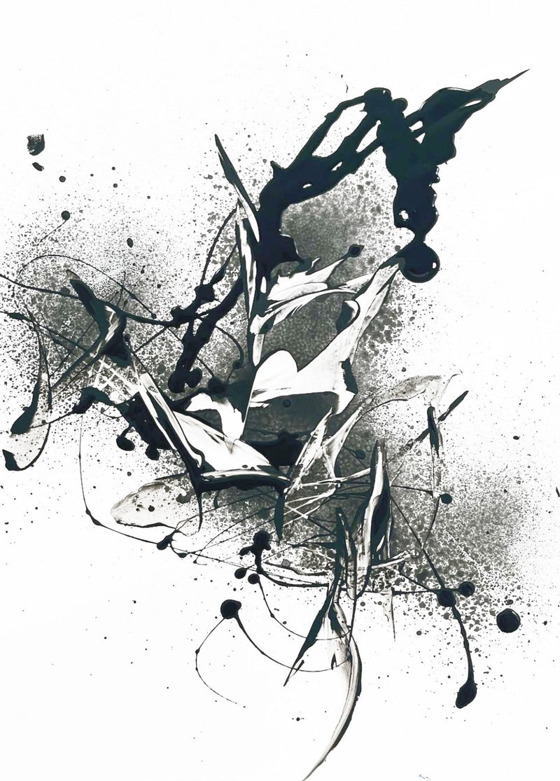 氷を思わせる冷徹な色面の鋭い筆触に絵具の跳ね。理性的に構築された幾何学的要素と身体性がほとばしる線条が均衡したアブストラクト・ペインティングで注目を集めているアーティスト、鈴木清麗(すずき・せいれい)。自身が影響を受けた西洋の抽象表現と日本の前衛書芸術のエッセンスを組み合わせ、荘厳な世界観を展開。