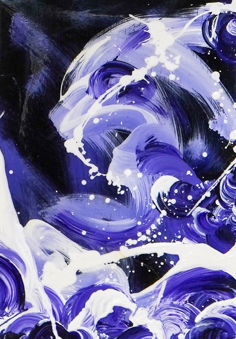 氷を思わせる冷徹な色面の鋭い筆触に絵具の跳ね。理性的に構築された幾何学的要素と身体性がほとばしる線条が均衡したアブストラクト・ペインティングで注目を集めているアーティスト、鈴木清麗(すずき・せいれい)。自身が影響を受けた西洋の抽象表現と日本の前衛書芸術のエッセンスを組み合わせ、荘厳な世界観を展開。