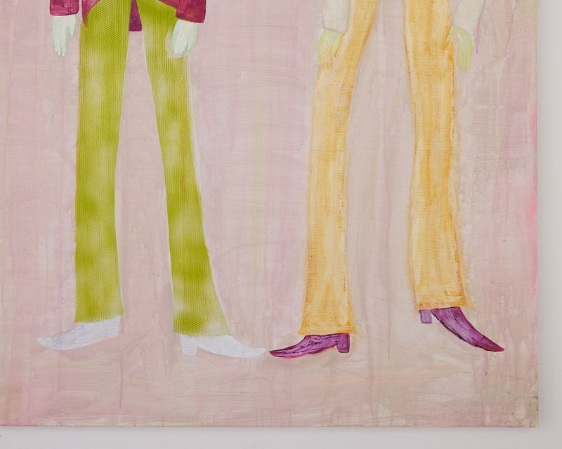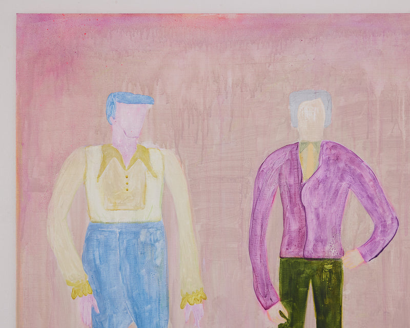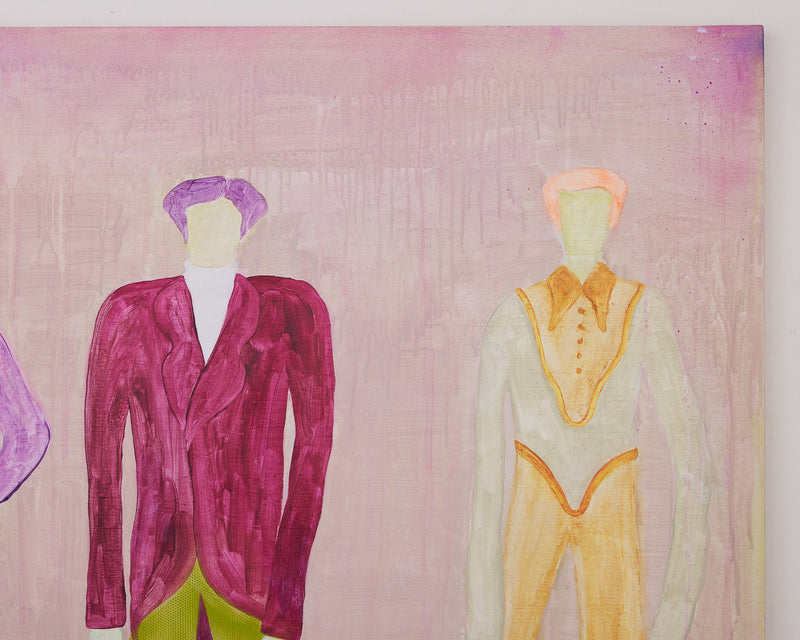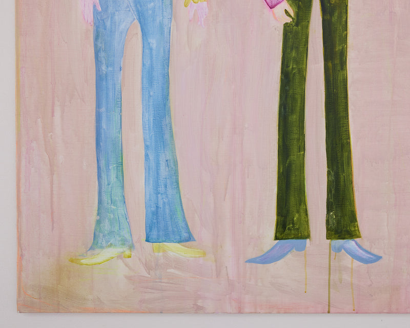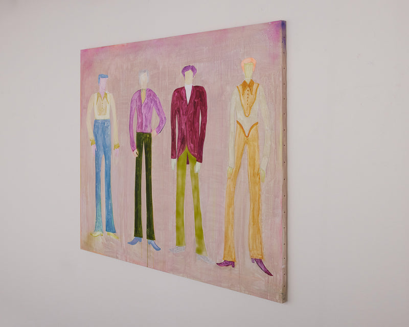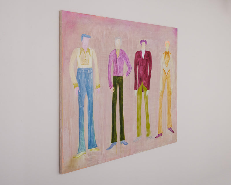 異国の友人から届いた手紙のような感触。そこに描かれるのはシュールな世界。ひとコマ漫画のような具象作品やコラージュによる抽象絵画を描いている秋元。作風を固定するのではなく具象と抽象の間に漂うものを描くことに関心があると話します。テーマに囚われることなく色、形、そしてアクリル絵具など画材のテクスチャーに集中し描いたペインティングとコラージュ作品で構成する「抽象と具象と社長」展示作品。