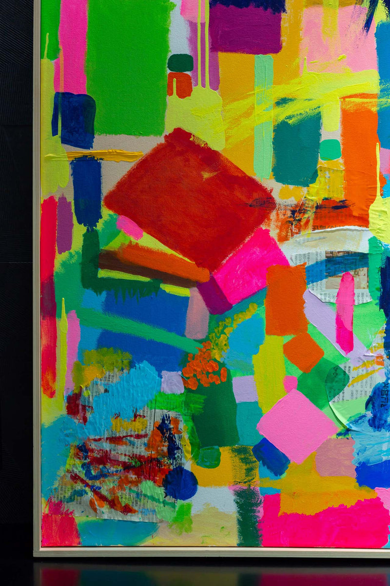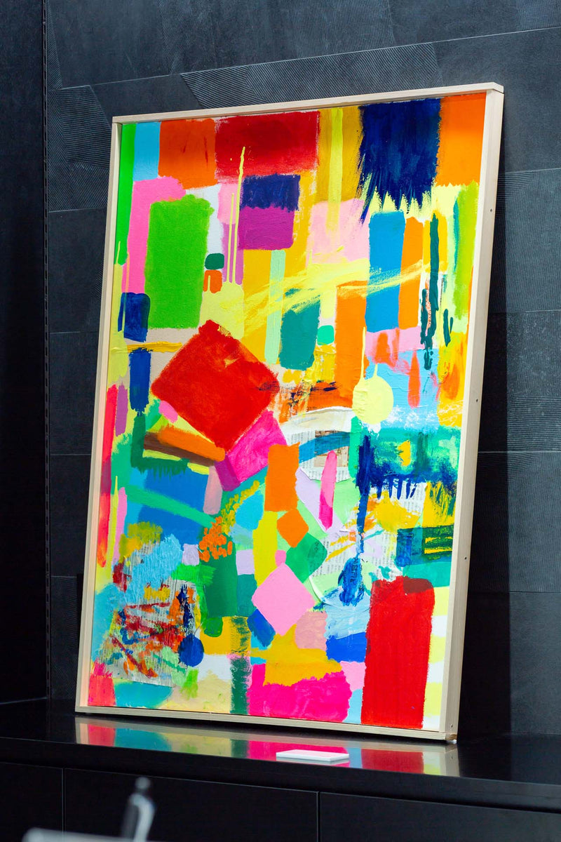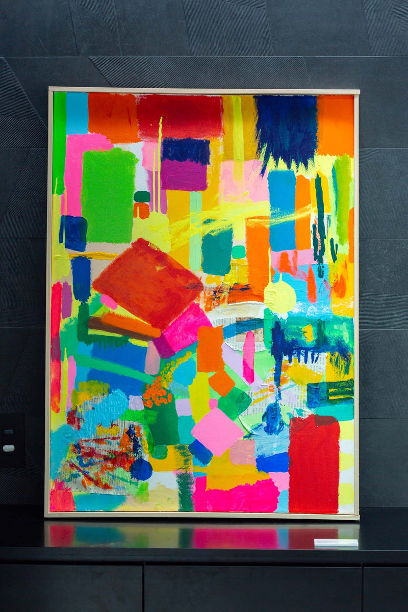 鮮やかな色使いと底抜けに明るい世界観が特徴的な作品を多く生み出している。鮎川陽子、マサヒト・ヒラヌマによる合同展覧会「#punk #rock #art #life」での展示作品。