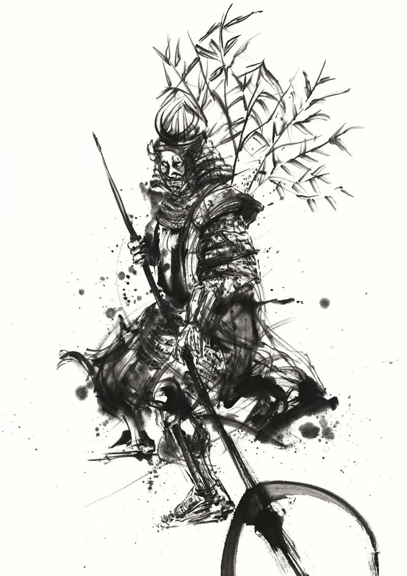 関ヶ原の合戦で活躍した「笹の才蔵」を描いた作品。戦国時代最強の誉も高い才蔵が、得意の槍を構えた迫力のある構図です。