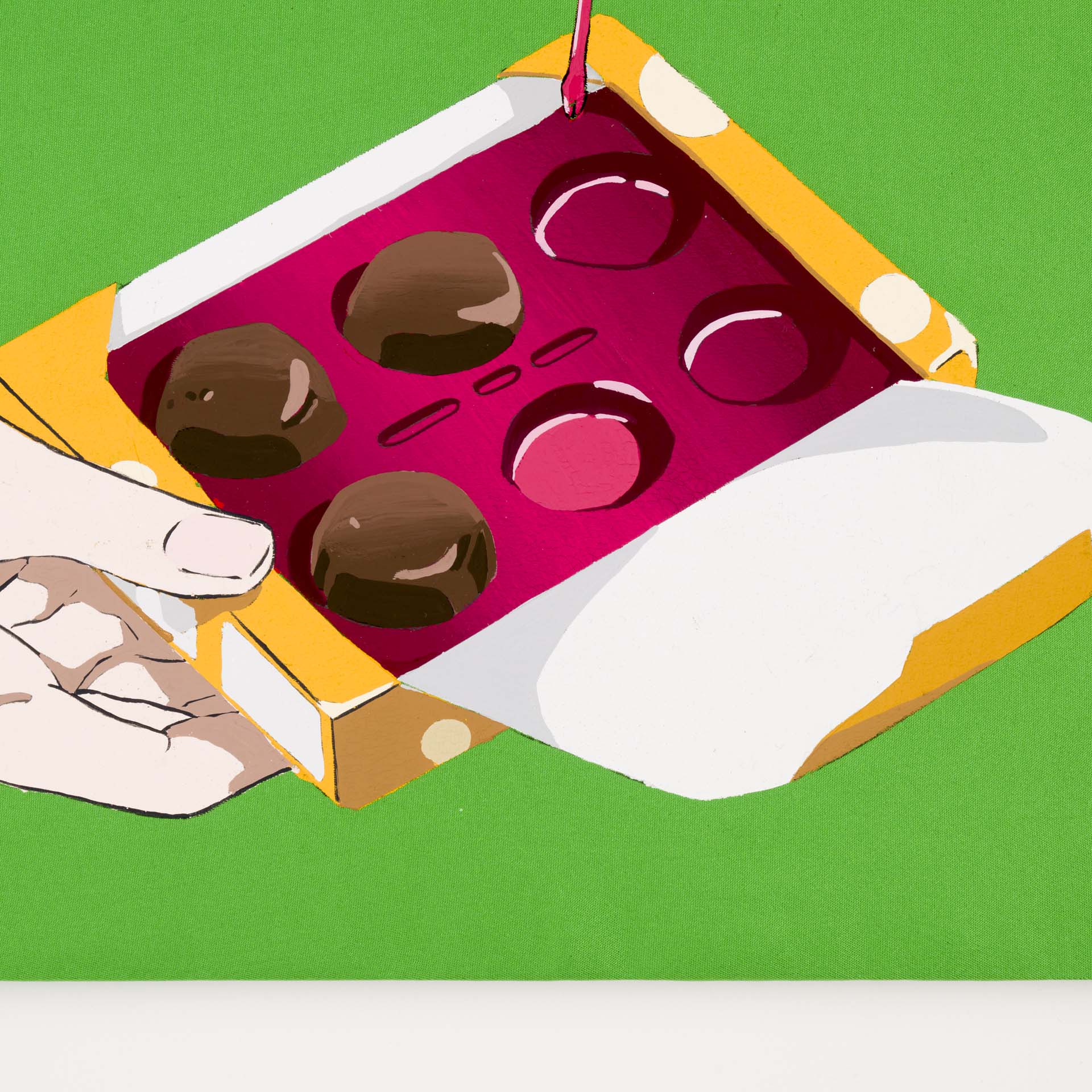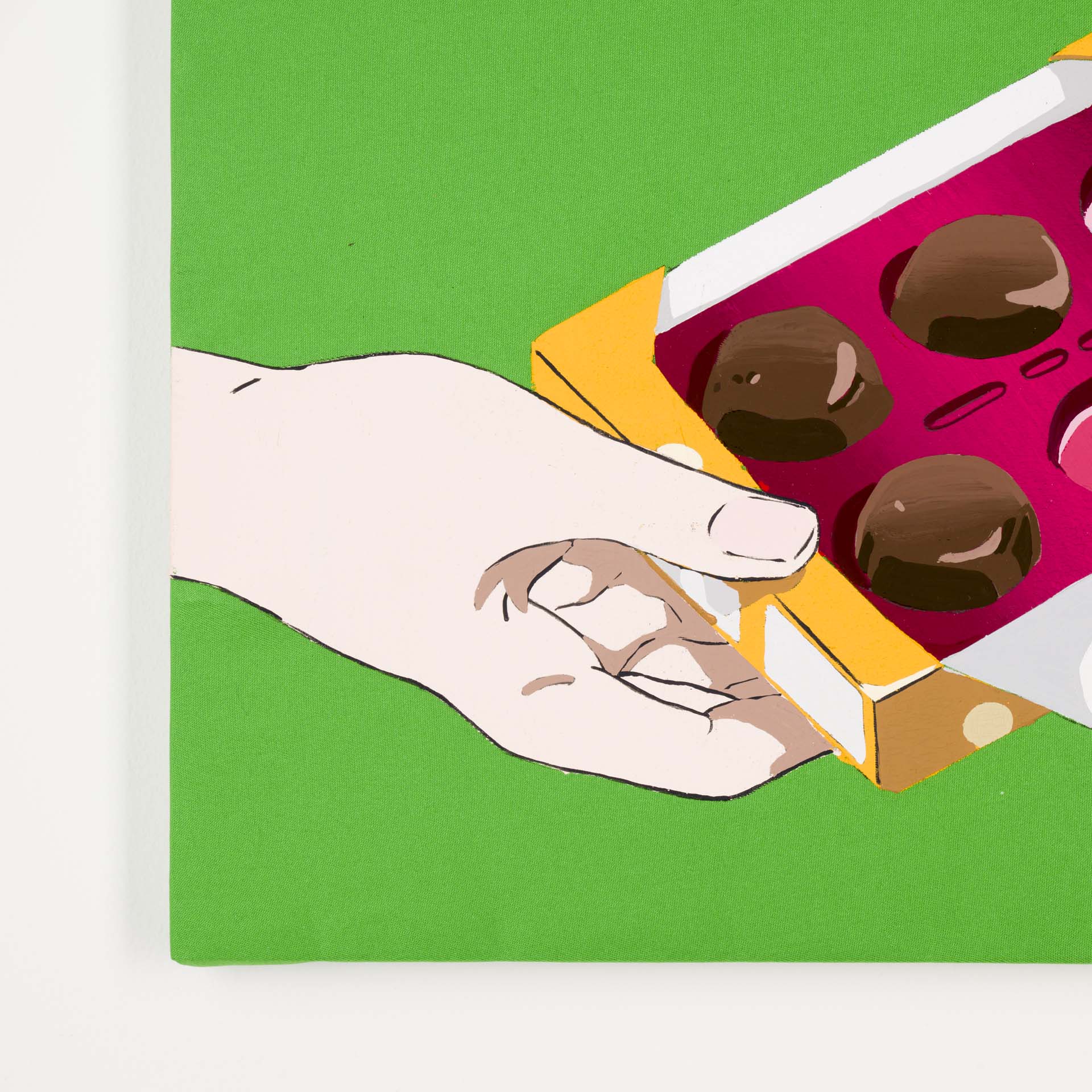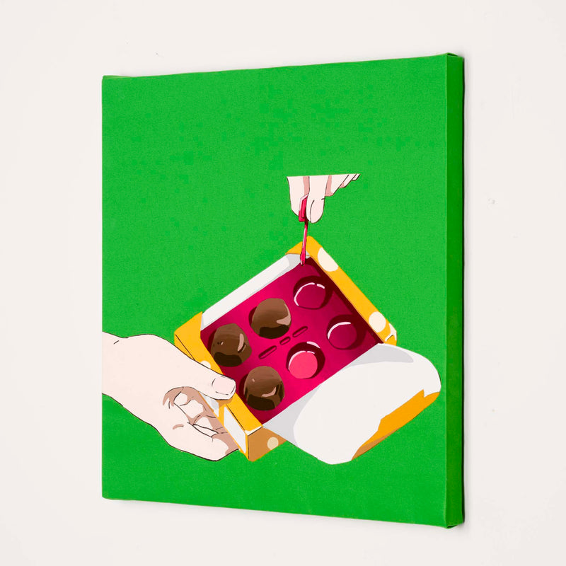 斉木は漫画やアニメーションといったサブカルチャーからの影響を起点に、映像やインターネット、スマートフォン以後の視覚環境を背景とした制作を行っている。グリーンバックやキャンバスにグリーンを作品の支持体に用い、その機能を反転させることで、本来は背景を消去する装置が「消されるもの」「残らないもの」を照らし出す構造を探っている。排除され、可視化されないイメージに意味を見出しながら、現代のイメージ環境を問い直している。