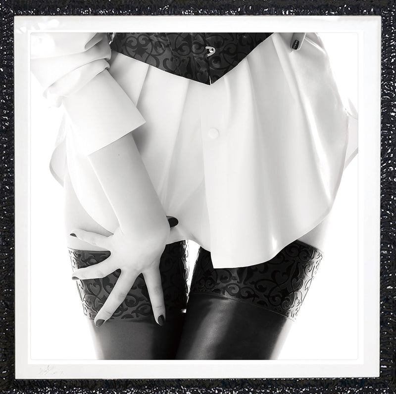 イギリスで芝居を学び、歌舞伎の世界にも身を置いたことがある異色の経歴をもつ、平塚篤史。ボンデージファッションを纏った女性の肢体を独自の世界観で捉え、モノクロームプリントで表現する。