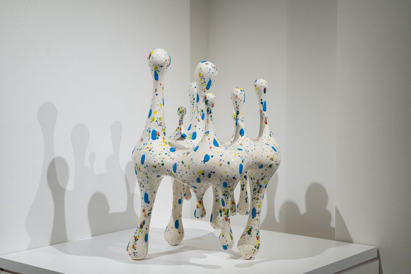 女性の下着や乳房など工芸の枠からはみ出した題材をとり、ろくろの回転や窯の中で燃えたぎる火といった「動」をも鋳込む陶芸家の横山玄太郎。相容れないと思われていたものがぶつかり合い、価値観が変容するさまを陶芸で表現する。