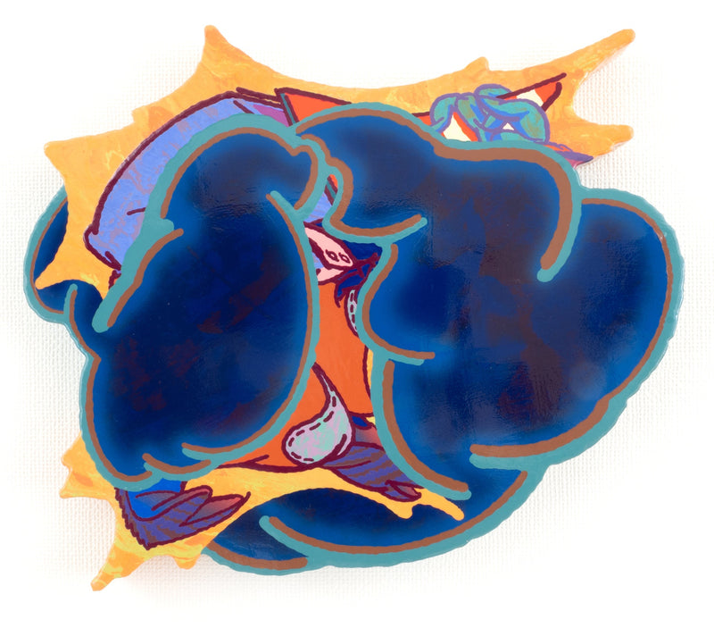 漫画のドタバタ劇のようなシークエンスを抽象的に描く。見えない部分に観る者の想像が掻き立てられる、個展「Hidden things」での展示作品。