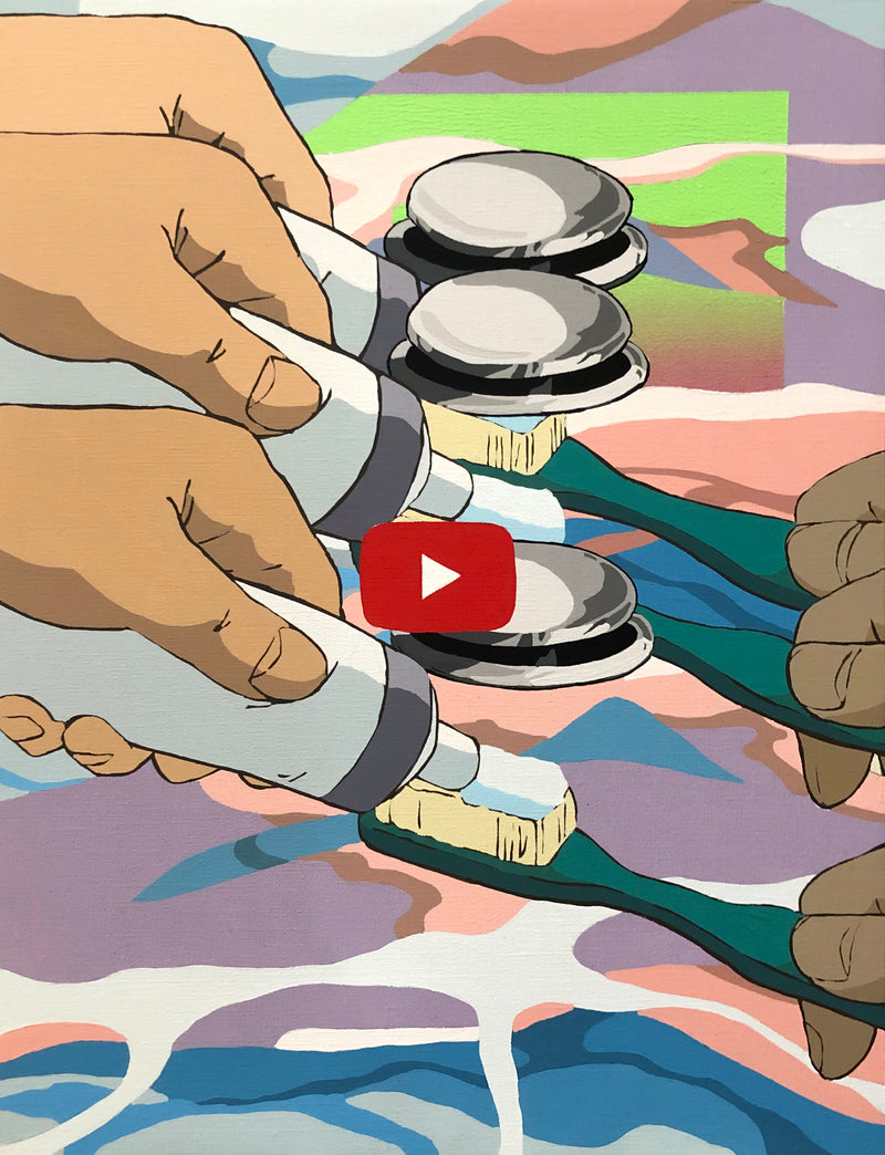 スマートフォンの登場以後、インターネットは日常生活と切り離せないものとなり、リアルとネットが交錯する視覚環境が常態化している。斉木はこの状況を背景に、流通し続けるイメージを絵画として記録・保存することを試みている。