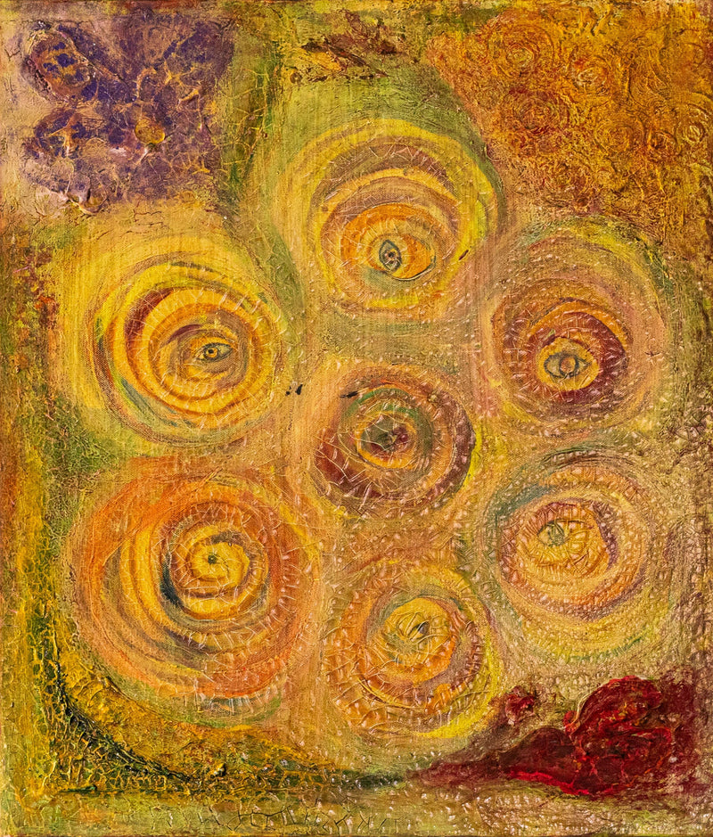 クレヨンやアクリル絵具、サインペンと画材を自由に駆使し抽象めいた具象画や絵本の挿絵のような作品等々広い世界観を展開する、アーティスト・浅野順子。1950年神奈川県横浜市出身。俳優の浅野忠信が実子、現在モデル、アーティストとして活躍するSUMIREは孫にあたる。