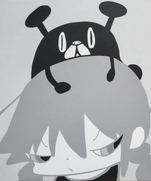 カメ子カメ男の作品に描かれる少女たちは、苛立ちと諦めの間をたゆたいながら、静かな眼差しで世界を見つめる。傍らの動物たちは、失われた存在の記憶を象徴するように寄り添う。愛犬との別れをきっかけに灰色を基調としたモノクロームの世界へ移行した作品には、儚くも確かな「生」の残響と、その裏に潜む孤独が静かに息づいている。