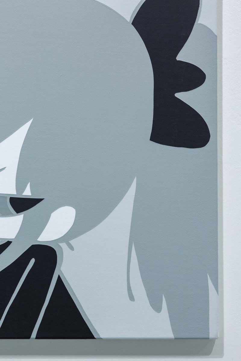 カメ子カメ男の作品に描かれる少女たちは、苛立ちと諦めの間をたゆたいながら、静かな眼差しで世界を見つめる。傍らの動物たちは、失われた存在の記憶を象徴するように寄り添う。愛犬との別れをきっかけに灰色を基調としたモノクロームの世界へ移行した作品には、儚くも確かな「生」の残響と、その裏に潜む孤独が静かに息づいている。